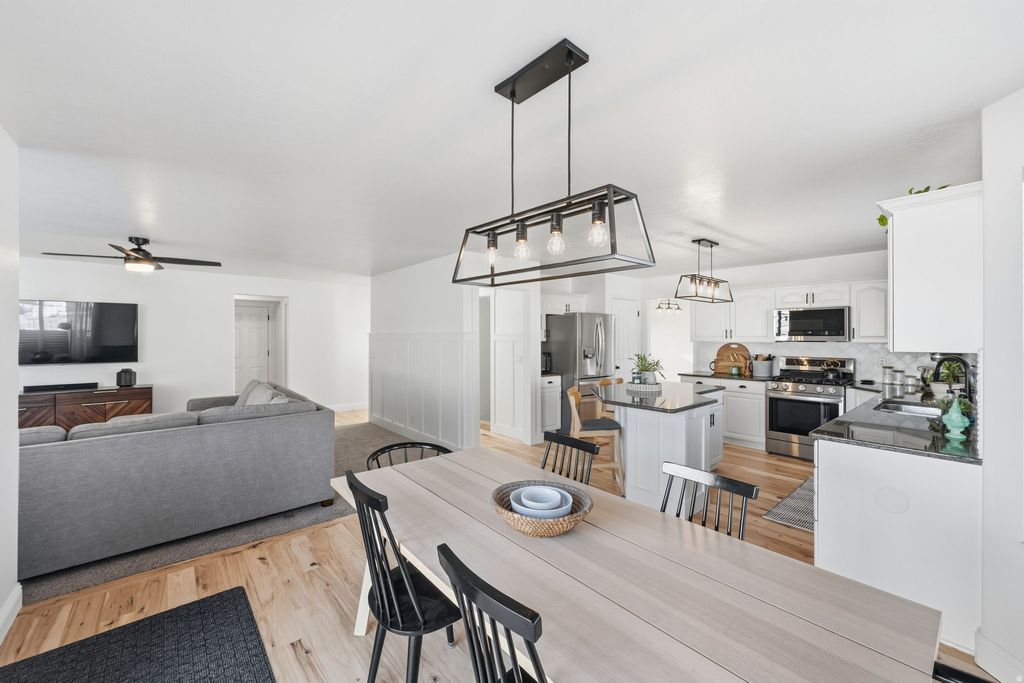 Prime Lehi location in a peaceful cul-de-sac on a desirable corner lot-offering privacy, space, and stunning mountain views while being minutes from Lehi's vibrant dining, shopping, and entertainment scene. This impeccably maintained home has been freshly updated with a brand-new roof, gorgeous new hardwood floors throughout the main level, fresh interior paint, and new carpet-delivering move-in-ready appeal and perfection. Step inside to an inviting open-concept layout flooded with natural light, perfect for everyday living and entertaining. The main floor flows seamlessly into a spacious kitchen and living areas, while the expansive primary suite provides a luxurious retreat. Upstairs and beyond, discover 7 total bedrooms (including generous secondary rooms) plus a unique full hair salon setup-ideal for personal use or added income potential. The fully finished basement features a second kitchen for multigenerational living or guests, with plumbing already in place for a second basement bathroom if desired. Outside, enjoy a large, private backyard perfect for family gatherings, play, or outdoor entertaining, plus RV parking and an oversized 3-car garage. Bonus: A fully detached outbuilding with its own separate access, plumbing, water, and electricity-versatile as an ADU, workshop, home office, or business space. Lehi Fiber is already wired and ready for ultra-fast internet. Don't miss this rare combination of updates, space, and prime Lehi convenience-schedule your showing today!