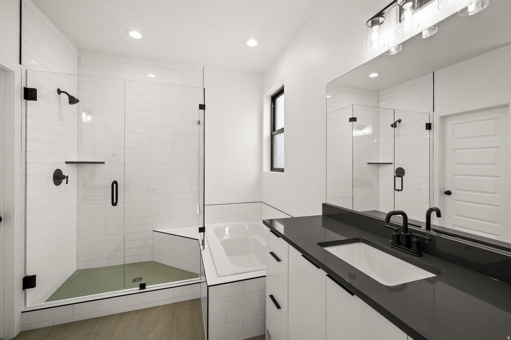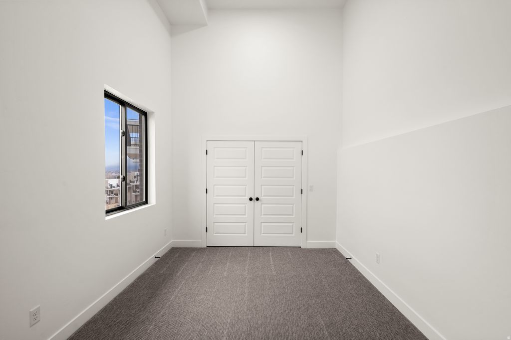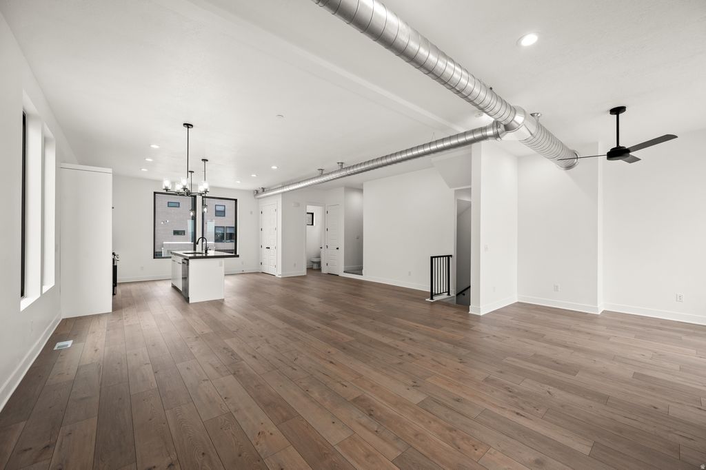 Striking modern design and brand-new construction come together in this 4-bedroom, 3.5-bath end-unit townhome. Clean architectural lines, soaring ceilings, and expansive full-height windows create a light-filled interior, while wide-plank white oak flooring adds warmth and sophistication. The open-concept main level is designed for both everyday living and effortless entertaining. A sleek, contemporary kitchen features high-end custom cabinetry, modern tilework, and stainless appliances, offering a refined yet highly functional workspace. The living area opens to a private balcony, where unobstructed panoramic views showcase the Salt Lake Valley, evening city lights, and remarkable sunsets. Upstairs, the primary suite offers a quiet retreat with its own private balcony, a spa-inspired bath, and generous closet space designed with both comfort and organization in mind. Two additional bedrooms with oversized windows share a full bath, and the conveniently located upper-level laundry adds everyday ease. A spacious landing provides flexible space for a home office, reading area, or additional lounge. The lower level features a private ensuite bedroom with a separate entrance-ideal for guests, a home office, fitness space, or potential income opportunity. Thoughtfully designed and beautifully executed, this home offers a rare combination of modern architecture, functional living spaces, and exceptional natural light. The location provides easy access to nearby trails and parks, as well as shopping, dining, and commuter routes-offering a lifestyle that blends outdoor access with everyday convenience.