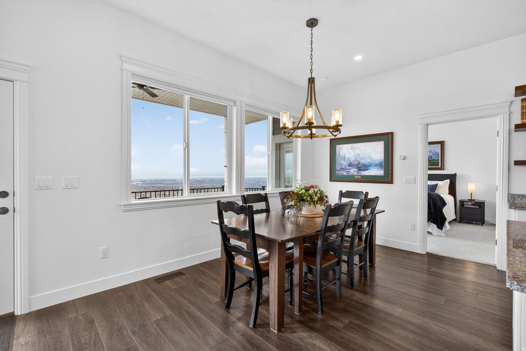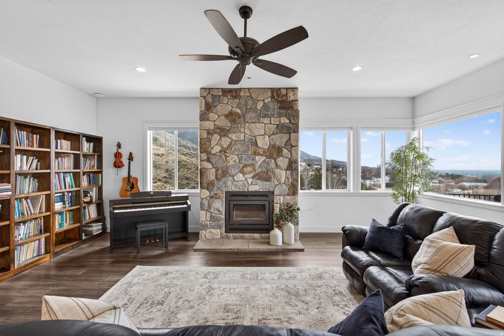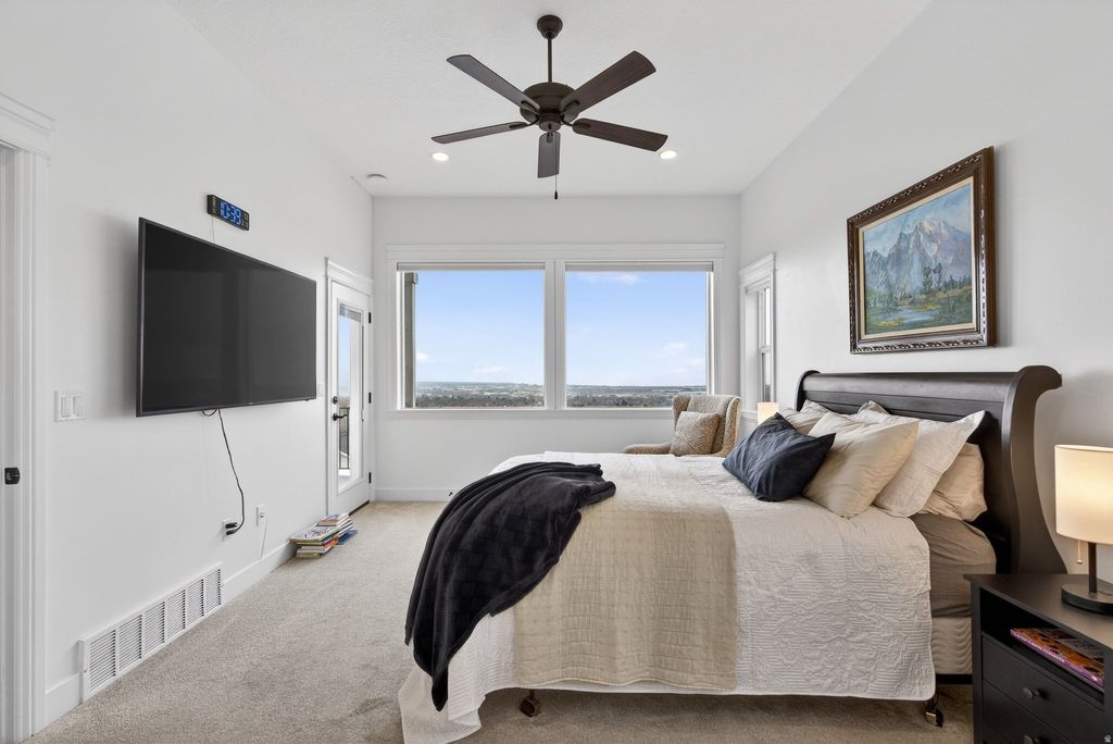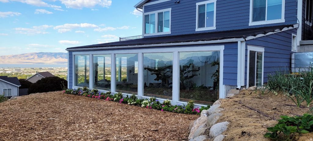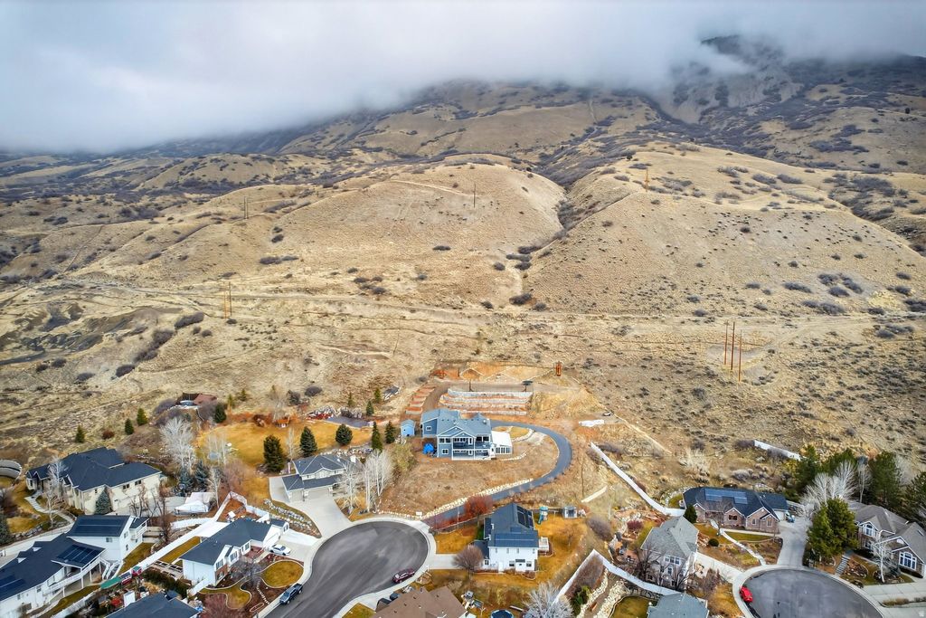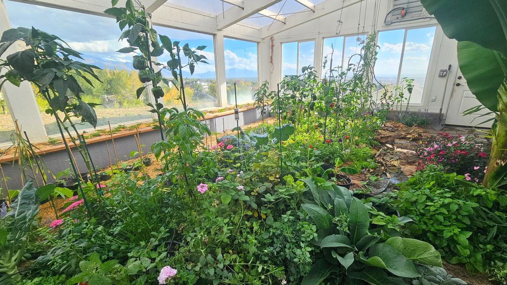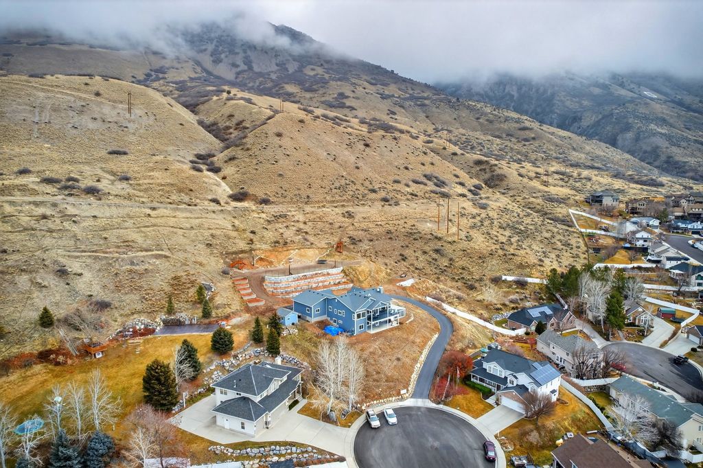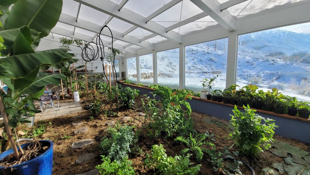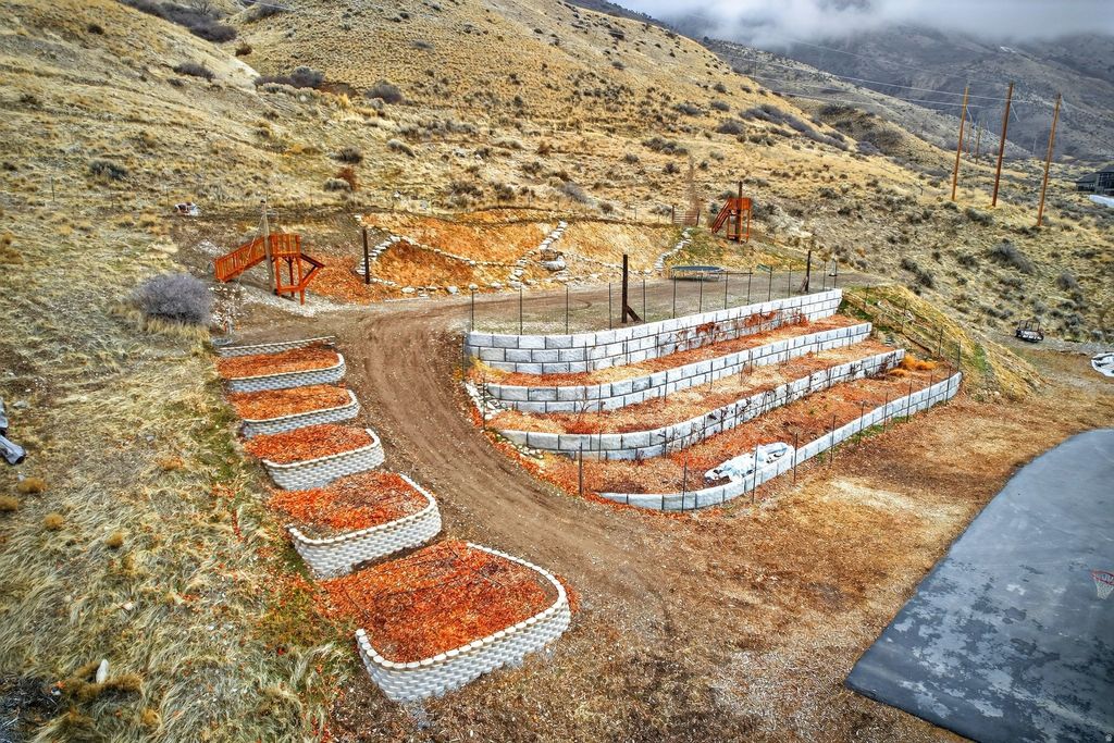 Discover a one-of-a-kind sanctuary where the mountain is your backyard and technology meets sustainability. This 1.36 acre piece of heaven features a Year-Round Geothermal Greenhouse with 270-degree unobstructed valley views and Mount Timpanogos that no other home in Utah County can parallel! This home isn't just a place to live-it's a lifestyle. Your back gate is the direct trailhead for the Valley Vista MTB Park and miles of hiking in Grove Creek Canyon. When you aren't on the trails, enjoy your own private 150-foot commercial-grade zipline or relax on the 10-foot deep deck soaking in the sunset. Green thumbs will marvel at the attached 640 sq. ft. Geothermal Earth Climate Battery Greenhouse. Fully automated and capable of maintaining 5090F year-round, it's a gardener's dream. The property features 4,000 sq. ft. of terraced gardens with rich soil, established berries, and grapes, plus a large root cellar for food storage. Perfection can be found inside with 10-foot ceilings and massive picture windows frame the valley in every room. The chef's kitchen boasts a granite island, and large butler's pantry. Retreat to the Master Suite, where even the soaker tub and walk-in closet offer panoramic views. The walk-out basement is pre-plumbed for a kitchen and has a separate entrance, ready to become a luxury ADU or Mother-in-Law apartment. With a south-facing driveway for easy winter melt, a 1,000 sq. ft. 3-car garage, and room for all your toys, this is Pleasant Grove's hidden gem. Come see why this property is the perfect blend of luxury, adventure, and independence. Square footage figures are provided as a courtesy estimate only and were obtained from tax data. Property sold along with parcel # 14-010-0050. Buyer is advised to obtain an independent measurement.