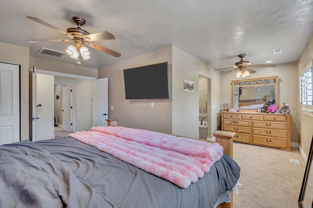 Location and views abound in this well-established east-side neighborhood. Enjoy quick access to I-215 and enjoy a fantastic mountain view from your covered back deck. Close to shopping, gyms, and trails. Plus, this home features 2 A/C units and additional railings. Grab this opportunity while you can! All information provided as a courtesy. Buyer and Buyer's Agent to verify all to Buyers satisfaction.