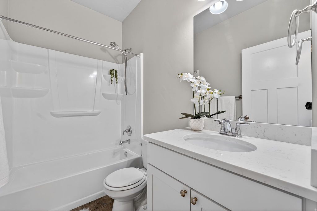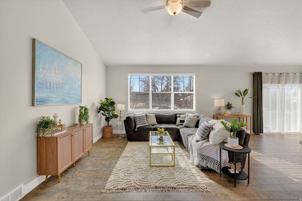 Hard-to-find rambler townhome in Draper offering 3 bedrooms and 2 bathrooms with a full basement ready for you to finish and customize, including the potential to add an additional bathroom and up to three more bedrooms. Ideally located less than five minutes from shopping, hospitals, and I-15, this home offers both convenience and an easy commute. Inside, tall walls and vaulted ceilings create a bright, open feel, complemented by ample can lighting throughout and durable tile flooring in main traffic areas for easy maintenance. The stunning primary suite features a walk-in closet and dual-sink vanity, while the open kitchen boasts an island sink, large pantry, and a flexible dining space perfect for everyday meals or hosting larger gatherings. Custom touches like a modern barn door, mudroom bench, and wainscoting in the entry add character and style, and the living room is prewired for surround sound. A rare opportunity for main-level living with room to grow in a prime Draper location.