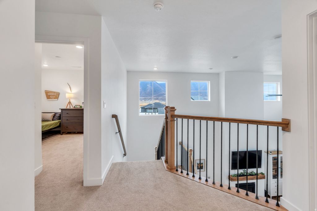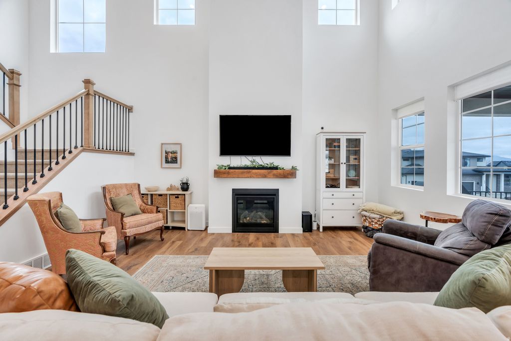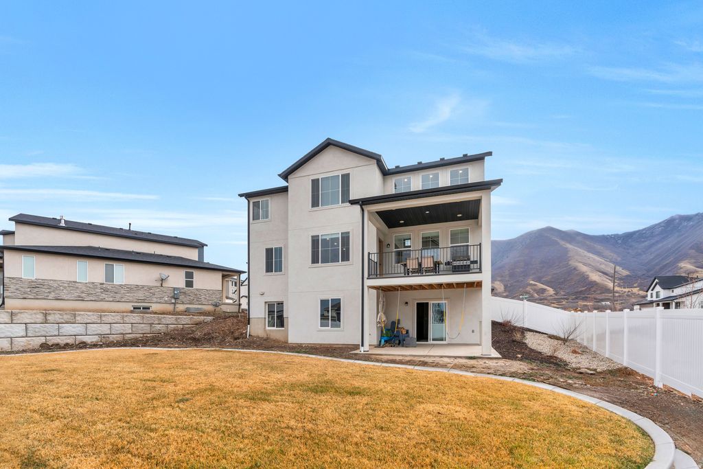 DON'T MISS THIS! PRICE REDUCTION OF $10,000! Welcome to your new home that combines modern elegance and convenience with charm and comfort. Built in 2024, this inviting home features natural light, soaring ceilings, fireplace, thoughtfully designed open concept family room kitchen layout and space for luxury living. The kitchen is designed for serious cooking and entertaining You'll find five spacious bedrooms and three full bathrooms along with an office. The primary suite is spacious and is equipped with new technology. The ensuite bathroom features double sinks & a large walk-in shower, a separate tub and a spacious walk-in closet. Each window boasts breathtaking views of the Wasatch Mountains and specifically Spanish Fork Peak and Maple Mountain. Drive to Mount Nebo and enjoy the scenic byway just minutes away. The walkout basement is wired and plumbed for future second family room, laundry room, two bathrooms, two bedrooms, and a kitchen. May be used as an ADU adding versatility and value. Special features include 2 water tanks, water softener,RV hookup, hot tub hookup, and a master bedroom with lofted ceilings. Immaculately maintained and spacious, this MAPLETON home sits on a large lot with amazing mountain views. Just minutes from canyons, shopping, restaurants, schools, and parks, it offers both convenience and tranquility. Square footage figures are provided as a courtesy estimate only and were obtained from County Records and appraisal. Buyer is advised to obtain an independent measurement and verify all information.