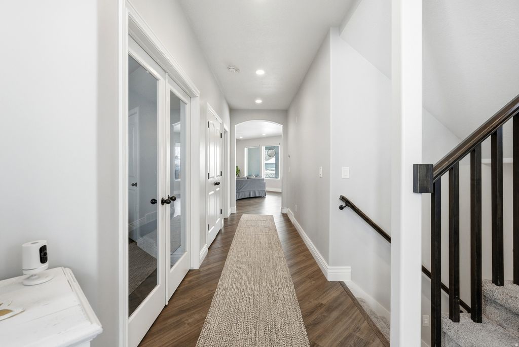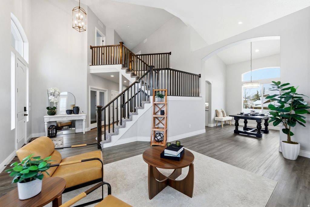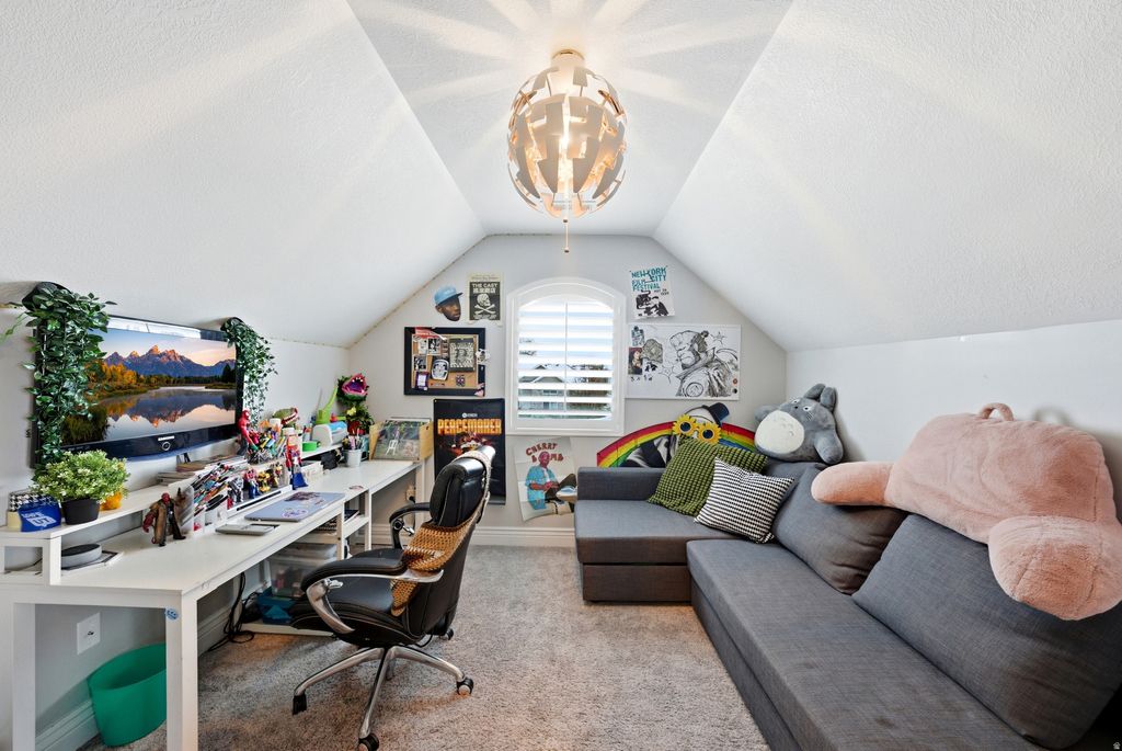This Rare Architectural Offering is one of the three largest floor plans in the Midas Creek Subdivision. With a distinctive design and custom layout, it has been impeccably maintained by its original owners. Thoughtfully designed for both refined living and everyday functionality, this home offers 6 potential bedrooms, 4 baths, a fully finished lower level, and an expansive three-car garage. The gourmet kitchen has thick granite countertops, stainless steel appliances, custom cabinetry with glass doors, and a great room with views of the patio and backyard. There is a main-level den or office and a mud room with full size lockers. Upstairs, there are 4 bedrooms which include an elegant, spacious, primary suite, complete with expansive windows, a double sided fireplace, stand-alone tub and an extra large shower. The finished basement includes a dedicated studio space currently configured as a private music recording room and ideal for creative professionals, remote podcast production, media work, or easily adapted into a quiet executive office. Clean architectural lines, generous ceiling heights, and well-proportioned living spaces create a sense of openness and ease throughout. Carefully prepared and move-in ready, this residence presents a rare opportunity to secure a distinctive property in Midas Creek before the arrival of peak spring inventory. Private showings now available. Square footage figures are provided as a courtesy estimate only . Buyer is advised to obtain an independent measurement.