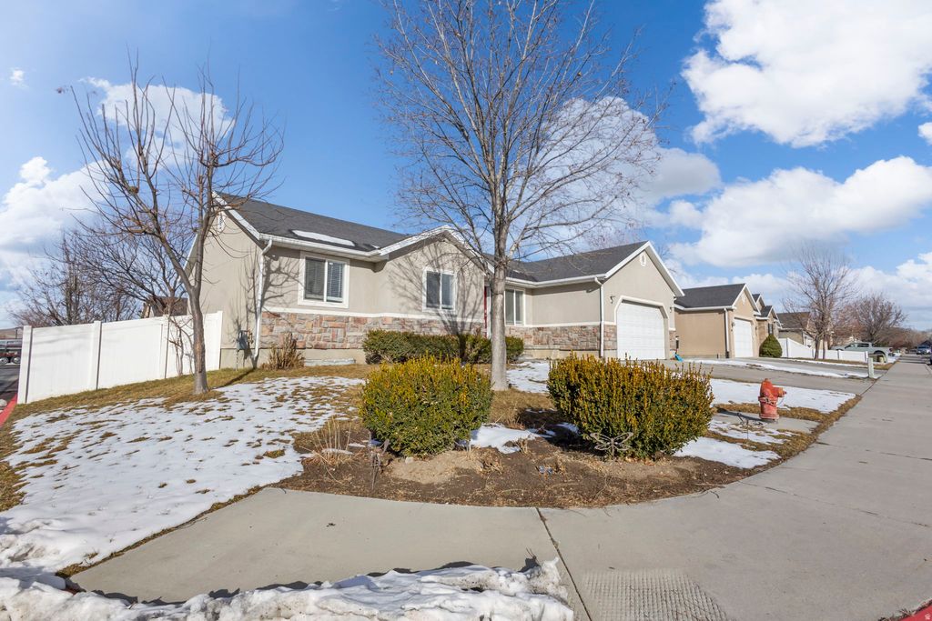 are 6-bedroom home in The Maples at Brookside! This spacious property also includes an office/den that could function as a 7th room, 3 bathrooms, main-floor laundry, and an open-concept layout designed for comfortable living and entertaining both upstairs and down. The primary suite features a large walk-in closet, and the home offers what buyers appreciate most in this price range: generous room sizes, abundant storage, and a practical floor plan with flexibility for different needs. Situated on a private corner lot of approximately 0.18 acres, the property features a fully fenced backyard, large storage shed, and plenty of space to enjoy outdoors. Conveniently located near parks, schools, shopping, dining, and quick access to I-15. Short Sale subject to lender approval. Sold as-is. Buyer to verify all information and square footage. Great opportunity in a desirable neighborhood.