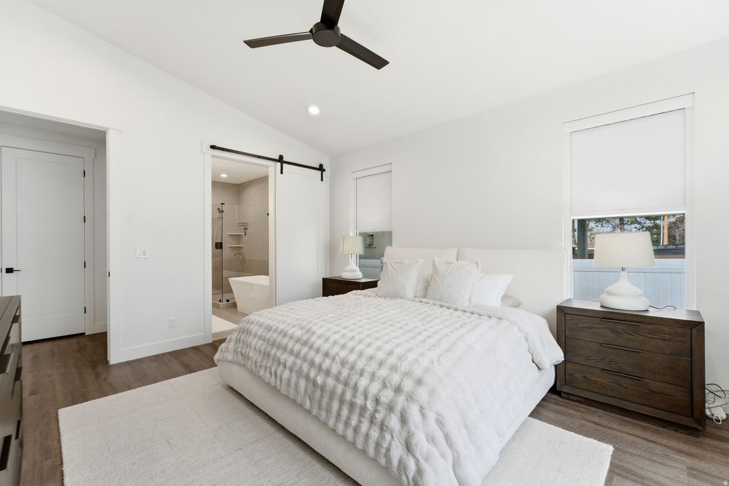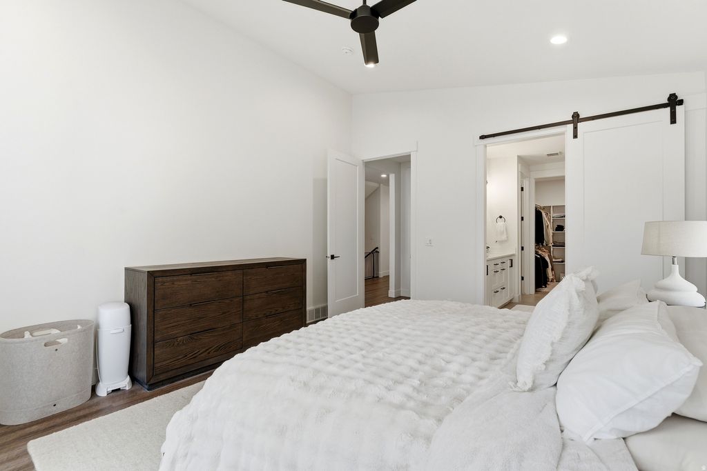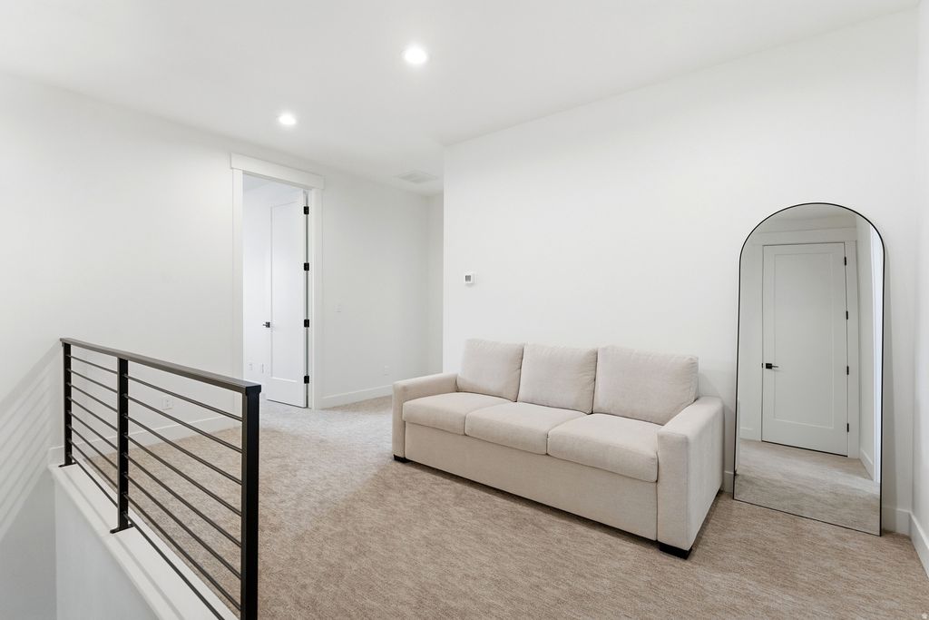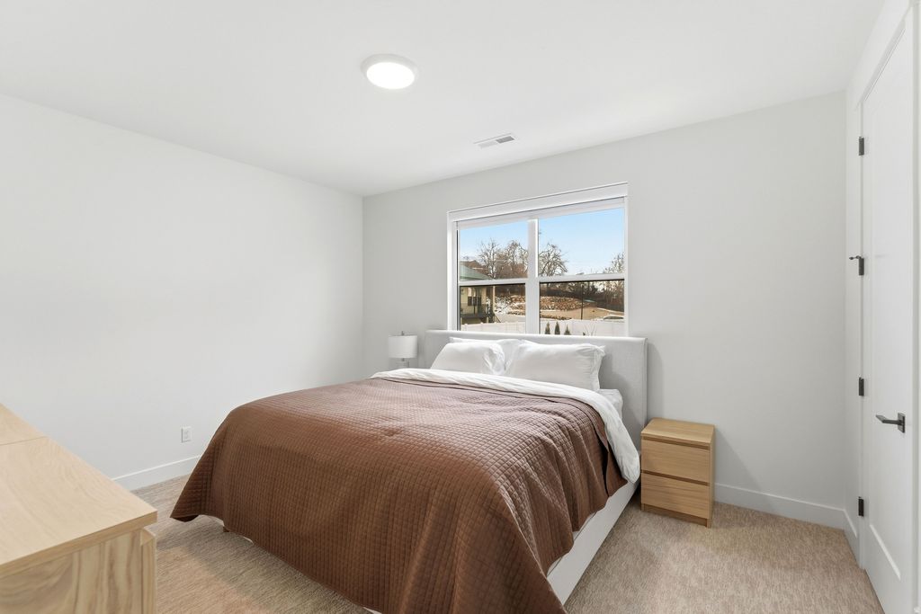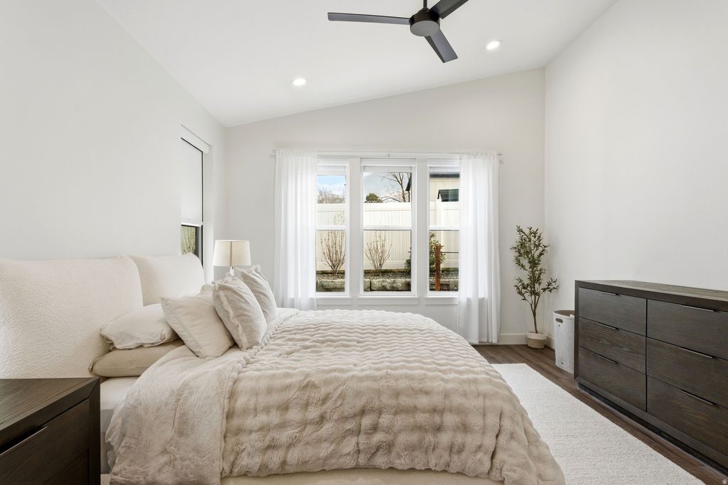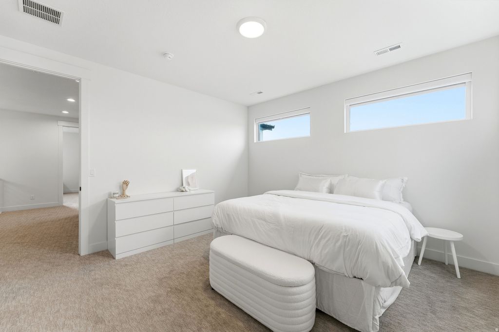 Welcome to 8569 Round Stone Cove , a 2024-built contemporary retreat in the heart of Sandy, minutes from World Class Ski destinations. Tucked into a quiet cul-de-sac, this light-filled, thoughtfully designed home offers the perfect blend of clean modern style and functional living. From the moment you step inside, you'll appreciate the bright, open layout, soaring ceilings, and expansive windows that flood the home with natural light. The main floor features a spacious primary suite for true single-level living, complete with a beautifully appointed bath and generous closet space. The open-concept great room centers around a sleek fireplace and flows seamlessly into the designer kitchen-showcasing white cabinetry, quartz countertops, stainless steel appliances, a large island with seating, and contemporary finishes throughout. Upstairs and down, the layout offers flexibility for family living, guests, or entertaining. The fully finished basement provides additional living space perfect for a media room, playroom, home gym, or guest quarters. Clean lines, modern railings, warm-toned flooring, and neutral finishes create a timeless aesthetic that feels both elevated and inviting. The exterior features fresh modern curb appeal, a covered front porch, and a spacious driveway with attached garage. Located in a desirable Sandy neighborhood with convenient access to parks, shopping, dining, and the Wasatch Mountains, this nearly new home delivers style, comfort, and move-in-ready ease. Why wait to build when you can move right in?