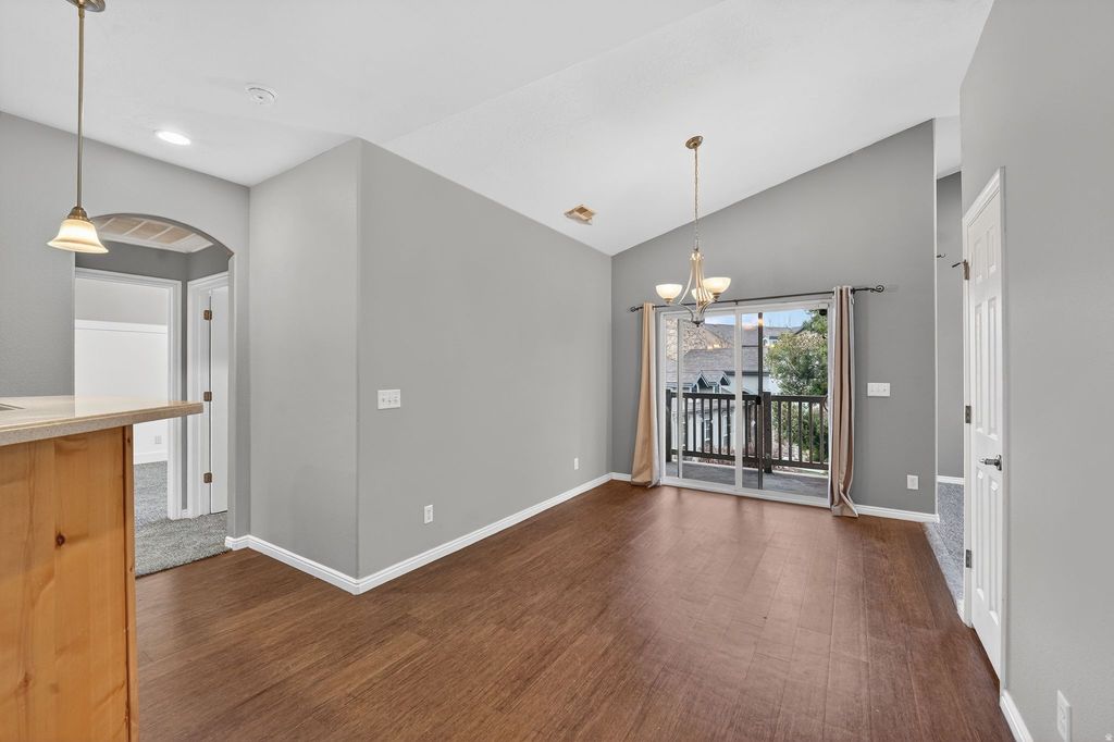 Well-maintained 3 bed, 2 bath townhome in a desirable Pleasant Grove location. Features new flooring, newer paint, and a bright, functional layout that feels move-in ready. Enjoy a private balcony with mountain views, a 2-car garage, plus a rare 4-pad driveway - the only one in the community, offering exceptional parking flexibility. Conveniently located near freeway access, shopping, dining, parks, and outdoor recreation. Low-maintenance living with great views and unique parking space.