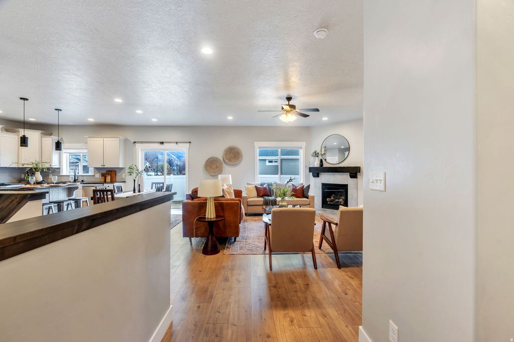 Beautiful craftsman-style home featuring a large open layout, and brand new flooring upstairs. Enjoy beautiful mountain views and a location close to great schools. The deep freezer, washer and dryer, and refrigerator all stay with the home. The layout offers large gathering spaces perfect for entertaining, including a spacious basement family room with an additional bedroom. The basement also provides room to add two more bedrooms and a bathroom, offering excellent potential for future growth.