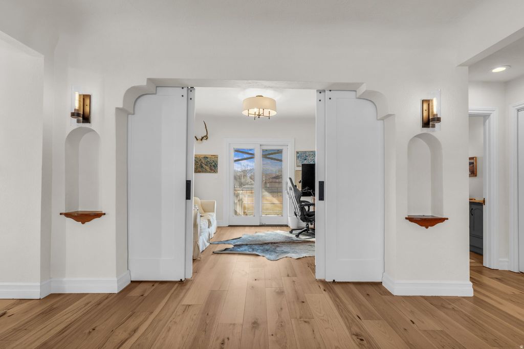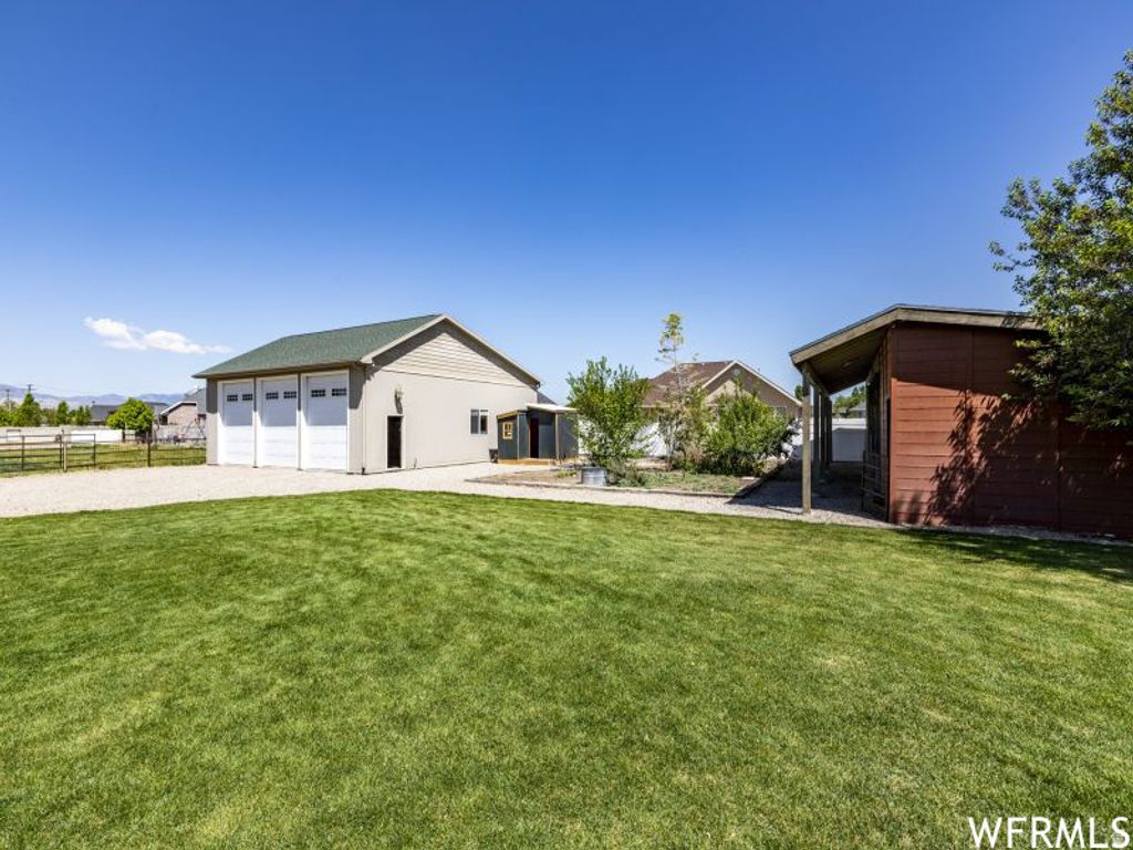 Welcome to "Old Farm"-a Draper modern farmhouse on 1.08 acres with true horse/mini-farm amenities and exceptional garage/shop space. Inside, you'll find 3,700 sq ft with 5 bedrooms and 3.5 baths, featuring new engineered hardwood floors on the main level, an updated open kitchen and dining area, a large main-floor primary suite, an office, a separate living room, and two family rooms-plus tons of storage throughout. Upstairs offers 3 bedrooms and 2 bathrooms, including a newly updated bath and a new balcony deck. Outside is where "Old Farm" really shines: approximately 2,600 sq ft of outbuildings including a huge 6+ car RV garage/shop with 220 power (41' x 38') and 12' doors, plus an oversized 4-car main garage (30' x 35') with 8' doors and epoxy floors. The grounds feature mature landscaping, mature fruit trees, 1,000+ sq ft of vegetable gardens, a custom chicken coop, a whimsical children's playhouse, a stream, and a welcoming firepit, along with both a covered back porch and a charming front porch for warm summer evenings. Equestrian features include covered horse stalls, hay storage, and a fully enclosed pasture-ideal for horses, donkeys, or llamas. And if animals aren't your plan, there's still plenty of room to dream: add a pool, pickleball court, an ADU, or explore future subdivision potential (buyer to verify). Come walk the property-your horses will thank you. Square footage figures are provided as a courtesy estimate only. Buyer is advised to obtain an independent measurement.