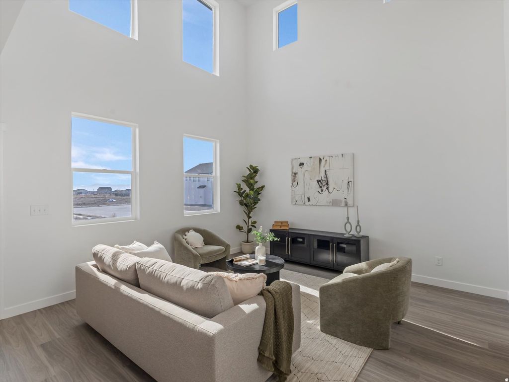 Home will be done in 2 weeks!! Introducing the Paisley floor plan, beautifully designed New Construction home in the up and coming part of Eagle Mountain with NO HOA! This thoughtfully crafted layout features 9-foot ceilings on the main floor and an open-to-below concept that fills the home with natural light. The kitchen showcases Quartz countertops, a LARGE kitchen island perfect for gathering, and a seamless flow into the dining area with a pop-out design for your dining room table that adds charm and functionality. Upstairs, you'll find three spacious bedrooms designed for comfort and privacy. The unfinished basement is ready for your vision! Whether you're dreaming of additional living space, a home gym, or extra bedroom, the potential is ALL yours! Complete with a two-car garage, energy efficient construction, and located in a growing spot of Eagle Mountain you will LOVE all the New shopping choices, restaurants and schools nearby. Come see this home TODAY! Easy to show and see!