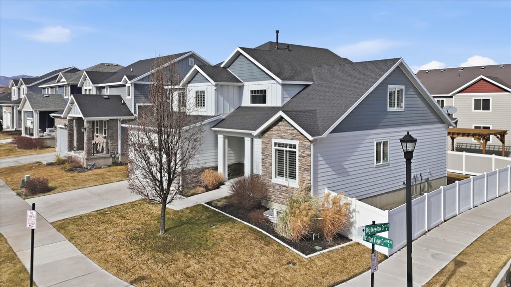 Prime South Jordan location offering the perfect blend of everyday convenience and quiet residential living. Just minutes from Daybreak and The District, this home places you close to one of the area's premier destinations for shopping, dining, and entertainment - while still enjoying a peaceful neighborhood setting. With easy access to Bangerter Highway and Mountain View Corridor, commuting anywhere in the valley is quick and convenient. Built in 2014, this newer home offers a modern, open-concept layout filled with abundant natural light. The spacious kitchen flows seamlessly into the main living areas, creating an ideal space for both comfortable daily living and effortless entertaining. Every detail reflects clear pride of ownership - exceptionally well maintained inside and out and truly turnkey. Situated on a desirable corner lot, the property provides added openness, privacy, and curb appeal. A large unfinished basement offers significant future equity potential and the opportunity to customize to your needs. With no HOA - a rare advantage for a home of this age in such a sought-after location - and a welcoming, well-kept neighborhood atmosphere, this is a standout opportunity. Homes in this pocket rarely become available. Move-in ready and waiting for you. Square footage figures are provided as a courtesy estimate only and were obtained from the County. Buyer is advised to obtain an independent measurement.