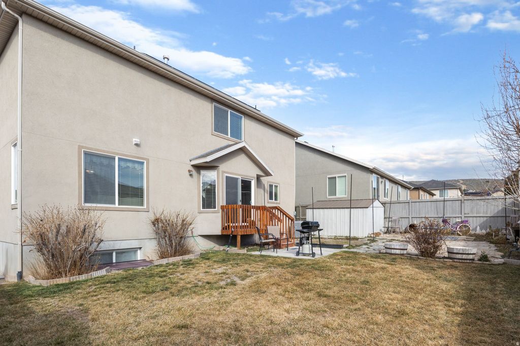 A beautifully balanced blend of comfort and functionality makes this home truly special! Welcome to this beautiful Eagle Mountain home that offers 5 bedrooms, 3.5 bathrooms, 2 car attached garage, and so much more. As you walk in the door you're immediately welcomed with an inviting living room with a 2 way fireplace! On the other side of that fireplace is another large family room with an open concept to the spacious kitchen and dining room. The conveniently located half bathroom on this level is great to have when entertaining. Upstairs you'll find the huge master bedroom with a large en suite featuring a walk in closet and big soaker tub. You'll also find 2 other bedrooms with amazing walk in closets. Another full bathroom, living room, and laundry room make up the upstairs. The basement is full of potential. Here you'll find 2 more bedrooms, a full bathroom, cold storage room, a wet bar, living room AND an outside entrance for a potential ADU! Backyard is finished, fully fenced, has a shed, and concrete pad for RV parking. The home also features solar panels that are paid off (say hello to $12 power bills), and a tankless water heater. This home is ready for its new owner! Come take a look before its gone!