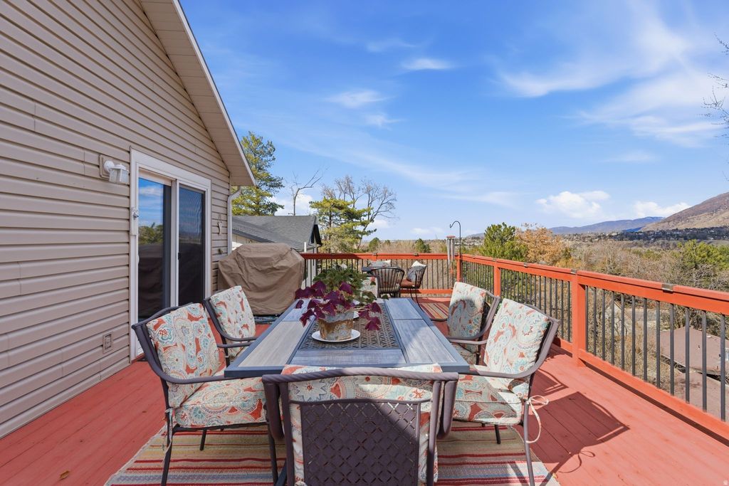 Nestled in a highly sought-after Sandy neighborhood near Willow Creek Country Club, this beautiful 5-bedroom, 3-bathroom home truly has it all. Designed for both comfort and entertaining, the inviting main family room showcases stunning floor-to-ceiling windows that flood the space with natural light, complemented by warm wood floors and a fireplace. The functional kitchen features stainless steel appliances, solid-surface countertops, and ample cabinetry-perfect for everyday living and hosting gatherings. Spacious bedrooms provide room for everyone, while the private primary suite offers a relaxing retreat with an updated en-suite bathroom. The fully finished walkout basement adds exceptional versatility with a large family room, abundant storage, and generous bedrooms. Step outside to enjoy breathtaking views from the expansive Trex deck overlooking a fully fenced yard. Additional highlights include a 2-car garage and plenty of storage throughout. Ideally located just minutes from Big and Little Cottonwood Canyons, top-rated schools, shopping, dining, and outdoor recreation, this home offers the perfect blend of convenience, comfort, and lifestyle.