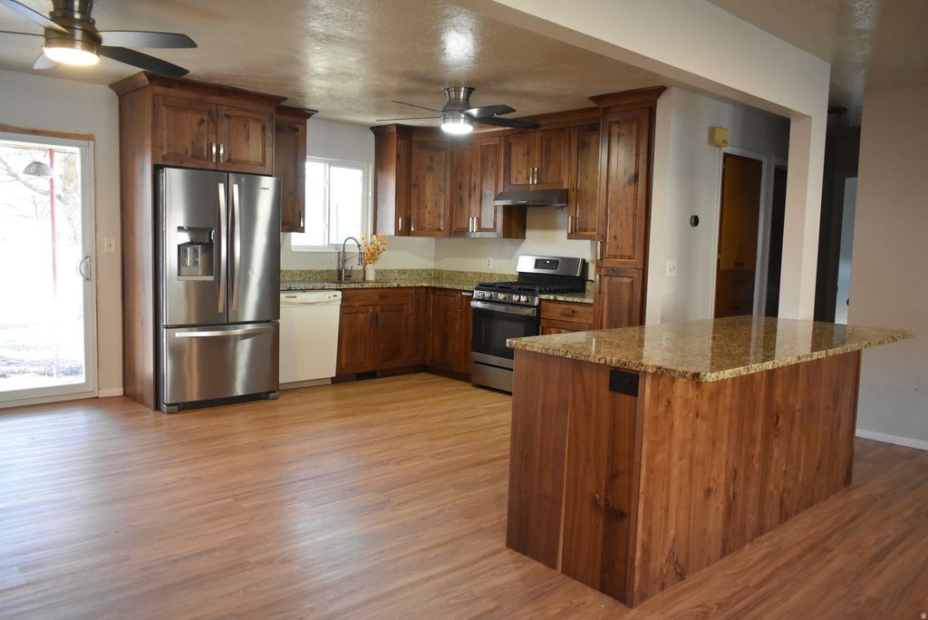 PRICE IMPROVEMENT! Bring your offers! Instant equity investment opportunity in the desirable and prestigious Hillcrest neighborhood, nestled up next to USU and Logan canyon. This classic home is east-facing with stunning mountain views. Option for house-hacking or mother-in-law suite potential with a separate basement entrance, two furnaces and two thermostats, one for each level, (both furnaces and the water heater are less than six years old). The most expensive high end updates have already been done for you! Designer Kitchen: High-end granite countertops and shaker cabinetry. Vinyl windows throughout the main floor and vinyl glass sliding doors. Durable and long-lasting vinyl plank flooring flows through the entire main floor. Fully updated lower level bath with dual sinks, and a walk in shower. Bring your vision for this solid brick home to life and save thousands! Choose the finishing cosmetic touches that reflect your personal style in the primary suite, choose your own paint palette for the bedrooms, select new flooring that fits your lifestyle and preference downstairs, update the windows on the lower level if you like, or finish the massive laundry room to maximize your home's utility. A similar home in the neighborhood closed at this exact same price point and did not have the stunning high end kitchen. This solid brick rambler is priced as-is to accommodate for its personalized glow-up and provide instant equity, in this stable, highly sought after area.