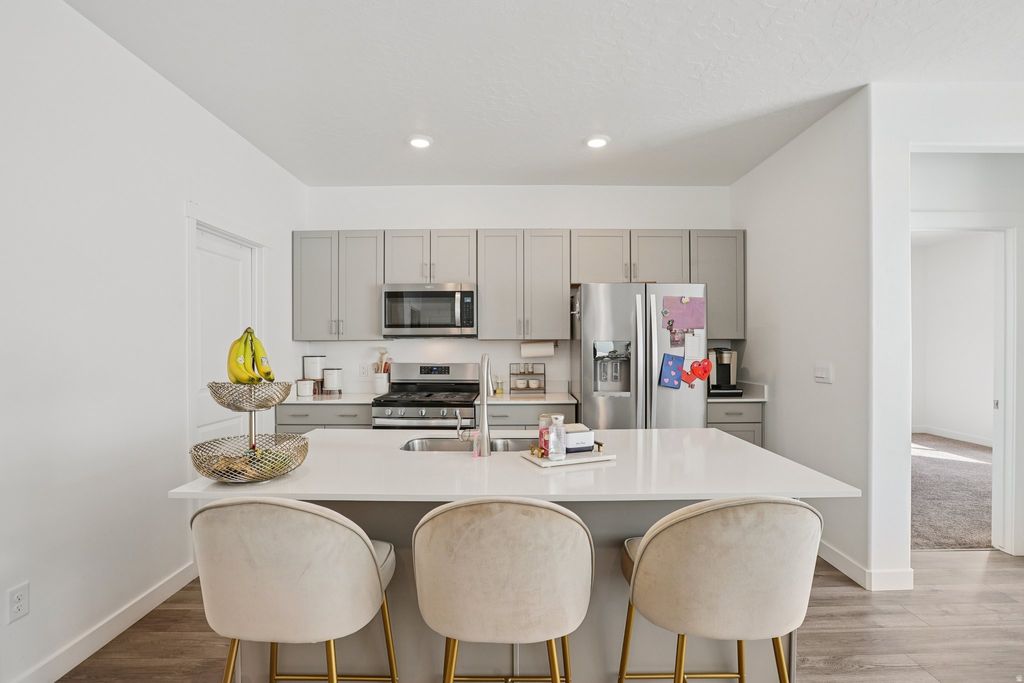 Welcome to your dream home in the heart of highly desirable Saratoga Springs, Utah-a prime location that perfectly balances peaceful suburban living with unbeatable convenience. This stunning single-family residence offers easy access to multiple routes in and out of the city, making commutes to Lehi's Silicon Slopes tech corridor, Utah Valley, or even Salt Lake City effortless. Whether you're heading to work, school, or weekend adventures near Utah Lake, this central spot puts everything within reach. Step inside to modern elegance featuring sleek quartz countertops that elevate the kitchen to chef-inspired status-perfect for everyday meals or entertaining guests. The home boasts multiple en suite bedrooms, providing privacy and luxury for family members or visitors alike. The highlight? A fully finished basement that expands your living space dramatically-ideal for a home theater, game room, gym, guest suite, or whatever your lifestyle demands. Best of all, this exceptional property is offered at a very affordable price in today's market, delivering incredible value in one of Utah's fastest-growing and most sought-after communities. You do not want to miss out on this wonderful, move-in-ready home-it's a rare find! Schedule your showing today-this gem won't last long! **Buyer is advised to obtain an independent measurement. Buyer/Buyers Agent to verify all info including sq. ft.