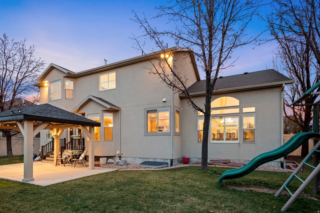 Open House this Saturday March 7th, 11-2 p.m. Welcome to the home of exceptional standards. As you enter, note the hickory hardwood floors and grand chandelier. Floorplan is open and full of natural light. Kitchen has double ovens, a stove plumbed for gas, knotty alder cabinets, and granite counters. Professional contractors were hired to finish the basement with a full kitchen and wet bar, soundproof theater room (that could be turned back into a bedroom), bedroom, full bath, office space, and storage room that includes laundry hook ups. Basement also features 9-foot ceilings. Upstairs you will find a grand primary suite with double-sided fireplace, jetted tub, walk-in closet, and spacious bedroom. Three more bedrooms, large landing, full bath, and laundry room complete the second floor. Solar panels are fully paid off and electric bill is extremely low. New paint and full intercom system throughout home. Enjoy unobstructed backyard views with no backyard neighbors and private access to the Midas Creek Trail. This fenced backyard also includes a stunning new gazebo complete with canned and solar lights and a playset. Refinished front door and newly painted garage doors. Many windows replaced and canned lighting installed throughout the home. South-facing and no HOA. Conveniently located near schools, shopping, dining, and entertainment. These dream owners have taken impeccable care of this home, always using licensed contractors and high quality materials, and the result is a magnificent home in mint condition.