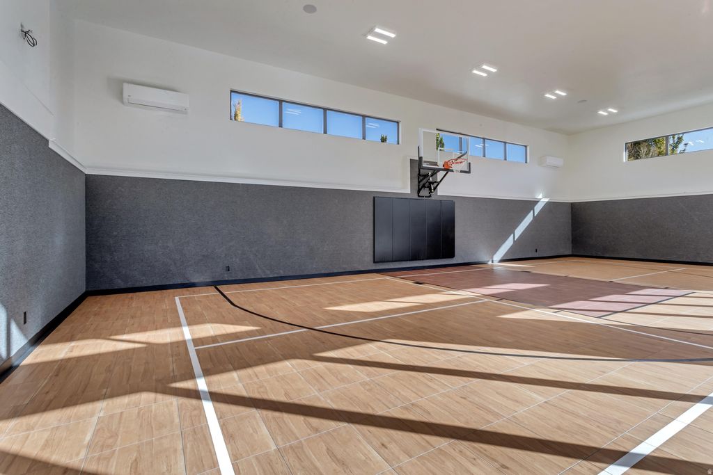 Experience exceptional luxury in the breathtaking custom estate, where impeccable craftsmanship meets resort-style living. Custom designed with flawless 10/10 finishes throughout the home features expansive open living spaces, a designer chefs kitchen, and walls of glass that capture natural light and stunning views. Enjoy unparalleled amenities including a private indoor basketball court, state of the art theater room, and a spectacular outdoor pool and spa designed for entertaining. With both massive attached and detached garages this one of a kind property offers perfect balance of sophistication, recreation and everyday comfort.