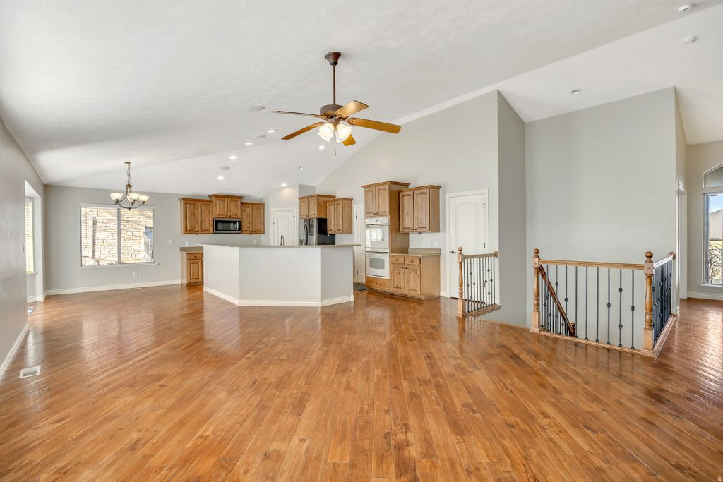 Come see this BEAUTIFUL 5 bedroom 3 bath rambler located in a quiet neighborhood in Saratoga Springs! Pictures don't do this home justice, VERY SPACIOUS. Enjoy stunning views of Utah Lake from the back deck. The kitchen is perfect for entertaining, featuring a double oven and extra long quartz island. The basement offers 9 foot ceilings, a spacious great room with an impressive theatre room and a wet bar. Walking distance to elementary school and parks. Enjoy the parks and many amenities of the neighborhood without an HOA.