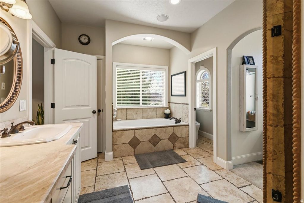 Discover your dream home in Pleasant Grove's serene Manila Heights! This stunning home offers 5,139 sq ft on a 0.50-acre lot, with a bonus room for flexible use. Inside: Extensive home automation; reverse osmosis water in kitchen, fridge, fountain, and laundry; radiant floor heat in family room; new two-stage high-efficiency furnace (2025) and water heater. Mature trees create a private yard oasis with pond and waterfall, fire pit, sandbox, vegetable garden, string lights for entertaining; auto sprinklers on secondary water; zero-maintenance concrete fence with custom wrought iron gates; 30-ft commercial flagpole with hidden locking rope. Square footage figures are provided as a courtesy estimate only and were obtained from tax data. Buyer is advised to obtain an independent measurement.