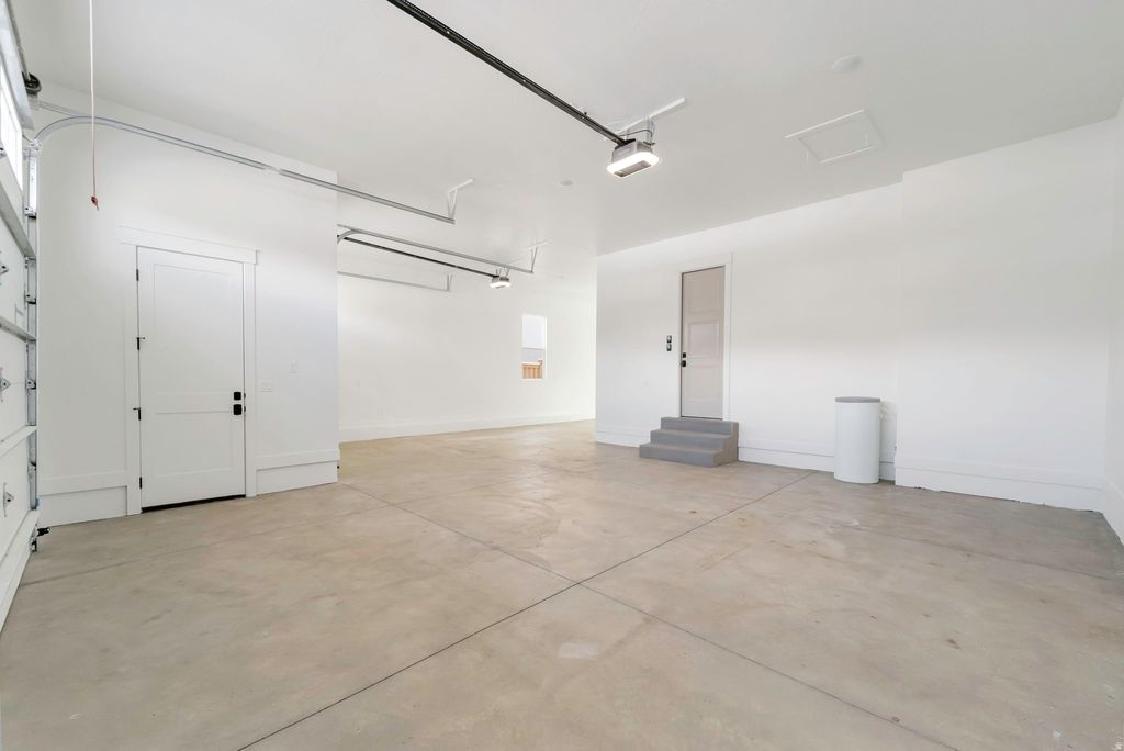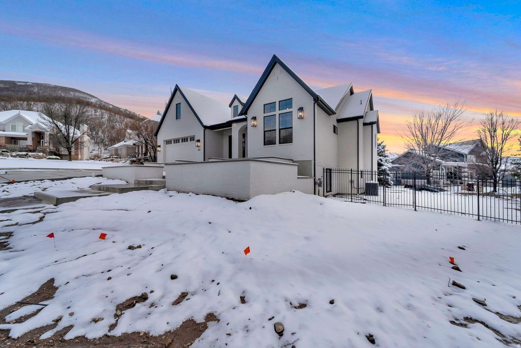 Rare opportunity for a brand new custom home located in the highly sought-after Eaglewood Cove community in North Salt Lake. This stunning rambler offers refined living with exceptional craftsmanship and interior design throughout. Nestled on a .36-acre lot in a cul-de-sac against the mountain backdrop and next to a golf course, this home combines privacy, elegance, and convenience - all within 10 minutes of I-15 access and only 15 minutes from downtown SLC. Designed with both everyday living and entertaining in mind, the gourmet kitchen is a true showpiece featuring a massive island, 48" range, decorative built-in refrigerator and freezer, expanded pantry with scullery, and an oversized dining nook ideal for hosting. Custom built-ins and detailed finish work elevate every space. The luxurious primary suite boasts vaulted ceilings with decorative beams and a spa-inspired bathroom retreat. The fully finished walkout basement provides generous additional living and entertaining space. Car enthusiasts and hobbyists will appreciate the oversized 3-car garage, including a rare 43' deep third bay. Located near multiple golf courses, parks, and hiking trails, this home offers mountain living with city convenience. A rare opportunity to own a truly exceptional custom home in one of North Salt Lake's most desirable communities. Price includes full landscaping which will commence when weather allows.