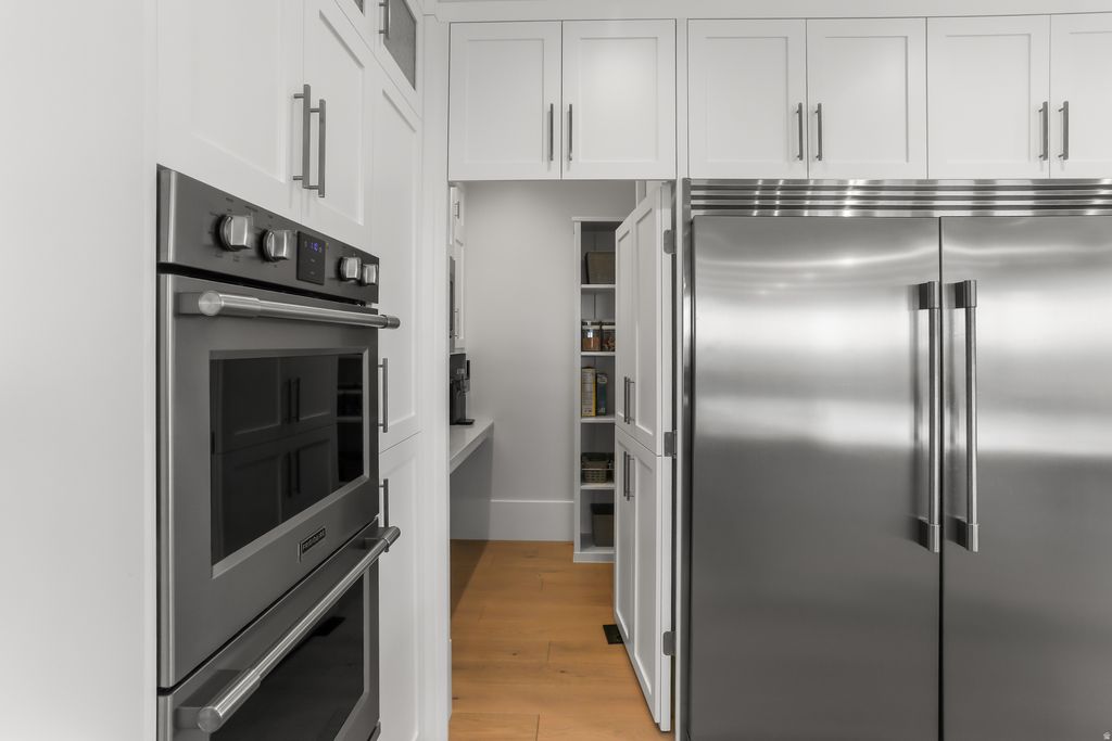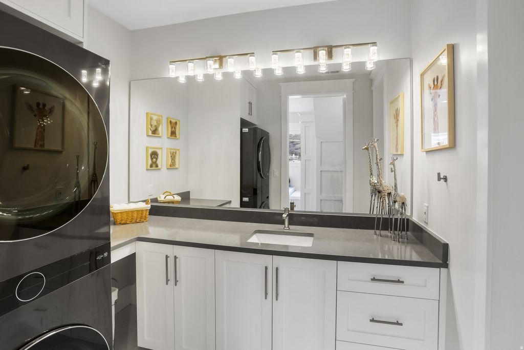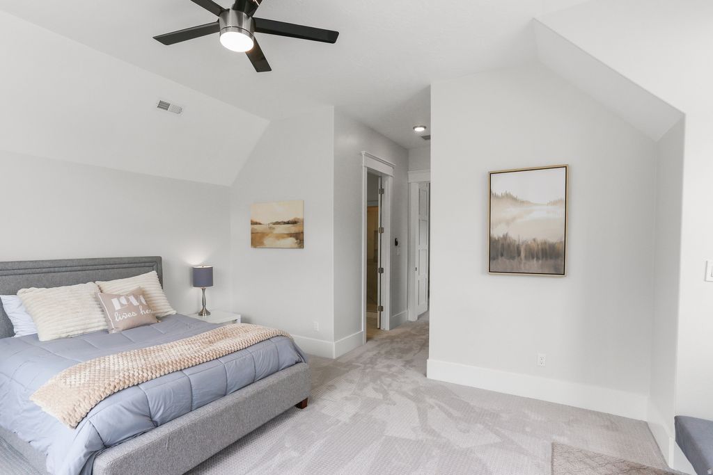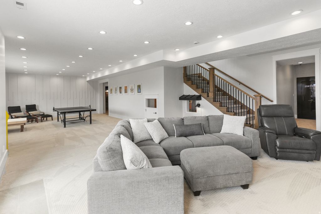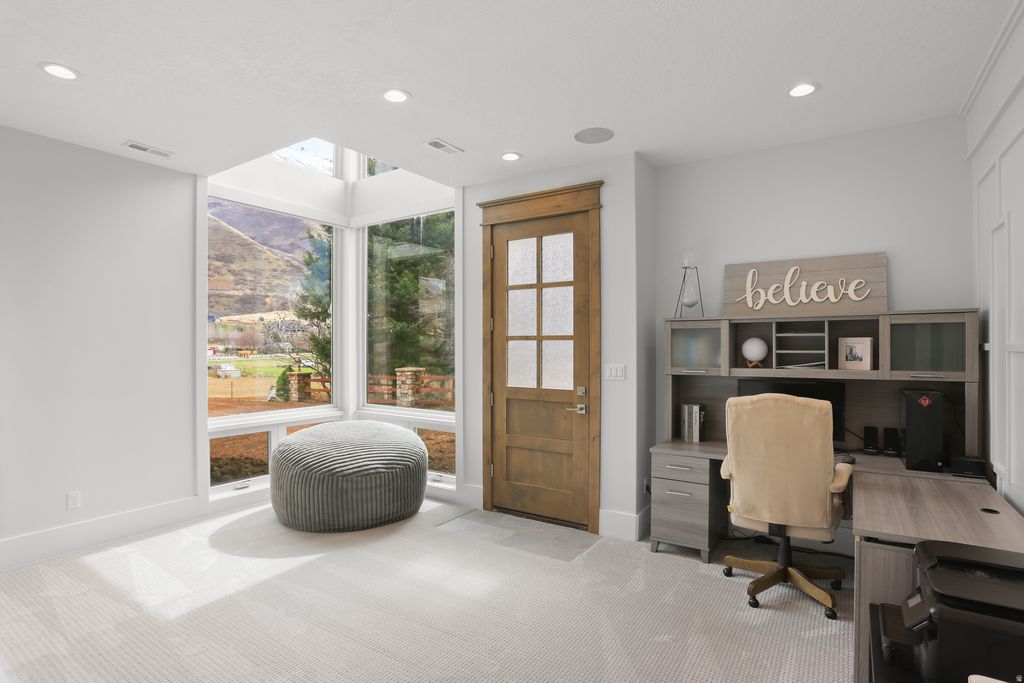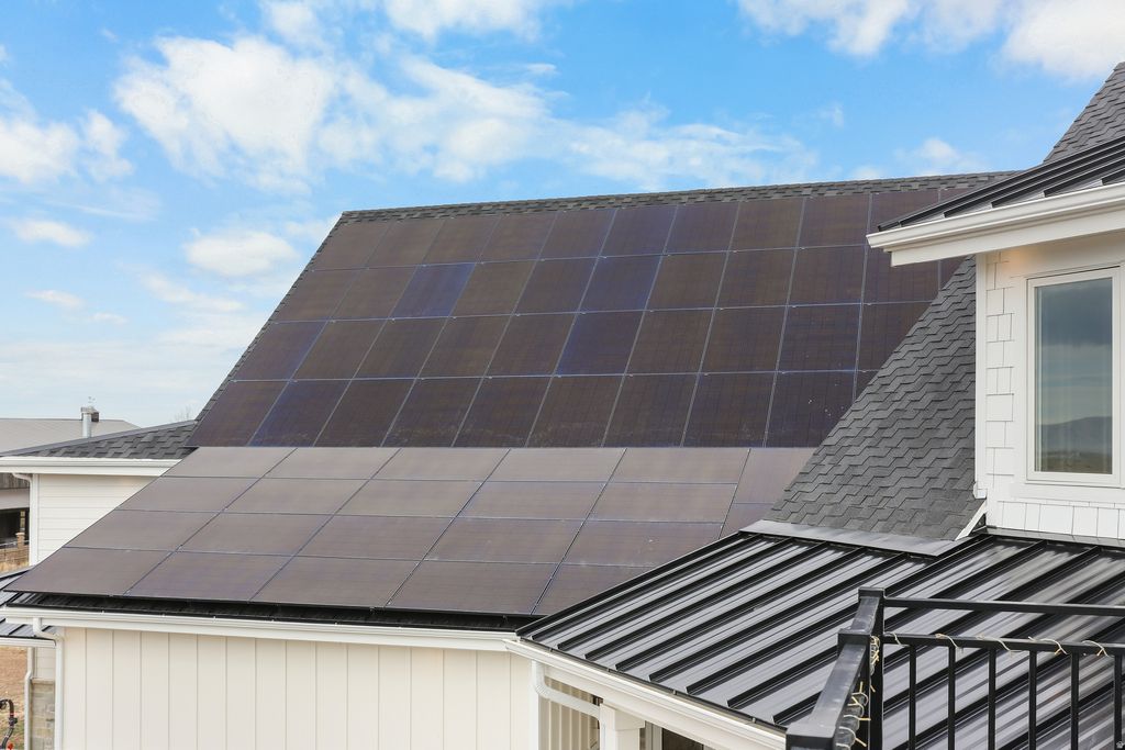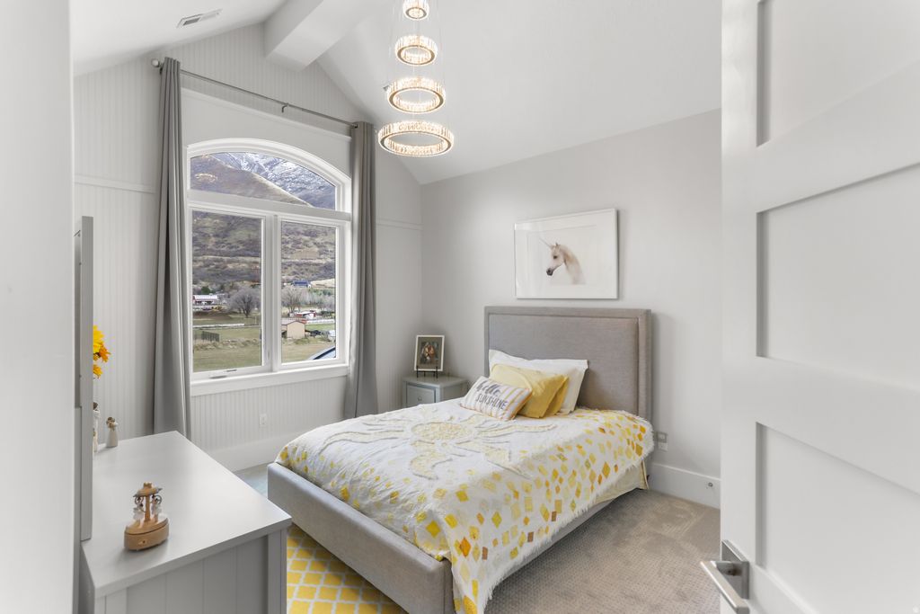 Nestled in a private, exclusive area of southeast Mapleton, this exceptional custom home was thoughtfully designed to capture stunning views of Mapleton's mountains and valley. Built with a ton of attention to detail, the home features spray-foam insulation, high-efficiency systems, Andersen composite double-pane casement windows throughout, 70 solar panels, Presidential asphalt shingles, 32 security cameras, remote blinds on all windows, built in speaker systems in select rooms throughout house. This home features 10-foot ceilings and a luxurious circular-design master suite with a sound-insulated bedroom, bay window sitting area, private deck, and a spa-style bathroom with dual floating vanities, two sinks, and expansive walk-in closets. A laundry stack in the master suite also adds convenience The home offers multiple climate zones with clean airflow in mind. Upstairs includes an additional 2 bedroom suites, each including spacious closets and a full bath with guest lounge area in between. Basement has a theater room with audio/video closet, wet bar, a connected room below master suite, and a gym room with exterior access + a built-in wet sauna and shower. There is a massive cold storage room and underground passage to 2,551 sq ft of additional unfinished flex/storage/shop space, with small garage-door access to the backyard. Exterior RV garage has two 14-foot doors and space for two RVs with hookups, plus a 1,200 sq ft apartment above with 2 bedrooms, full bath, kitchen, and laundry. Plans for a future pool and landscaping have already been completed. Schedule to see this home today!