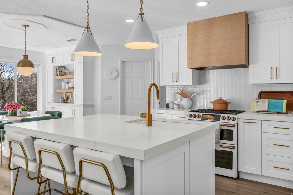 This Stunning High End Remodeled home sit on a Lush .65 Acre lot in Custom Home Neighborhood. Year Round Spring feed Stream flows through Property. Incredible Mountain Views from Private Gazebo or the Large 2 Level Patio. Custom Flooring Throughout, Fresh Paint. Immaculately cared for. Chefs Kitchen with Top of the line Appliances, Custom Ceiling Height Cabinets, Large Center Island, Open to the Grand Family Room with Wall of Windows to take in the Views. Formal Dining Room and Living Rooms off Foyer. Serene Primary Owners Bedroom with Attached En Suite Bathroom and Walk in Closet. 2 Additional Main Level bedroom and Main level Laundry. Fully Finished Walkout Basement with 2nd Family Room/Rec Room with French Doors leading out to the Backyard. 2 Lower level Bedrooms and Updated Bathroom. Oversized 2 Car Garage with Side Parking. Square footage figures are provided as a courtesy estimate only. Buyer is advised to obtain an independent measurement.