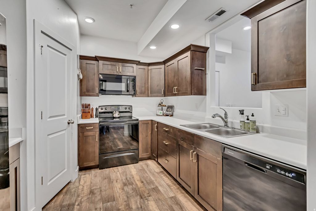 Price Adjustment: Welcome to comfortable living in the charming community of Santaquin-where small-town warmth meets everyday convenience. Ideally located just off I-15, this home offers quick access to shopping, schools, and Centennial Park. This inviting main-level condo features a spacious living room filled with natural light, complete with an electric fireplace that creates a cozy setting for relaxing evenings. Sliding glass doors lead to a private covered patio-perfect for enjoying peaceful sunsets or hosting a casual BBQ. The kitchen is thoughtfully designed with a convenient pass-through to the living area, making entertaining easy and seamless. Down the hall, you'll find a well-organized laundry room with additional storage, a full bathroom, and two versatile bedrooms-ideal for guests, family, or a home office. The primary suite offers a generous walk-in closet and a private full bathroom, providing a comfortable retreat at the end of the day. With so much to offer at an affordable price, this is a fantastic opportunity to enjoy easy, low-maintenance living in a great location!