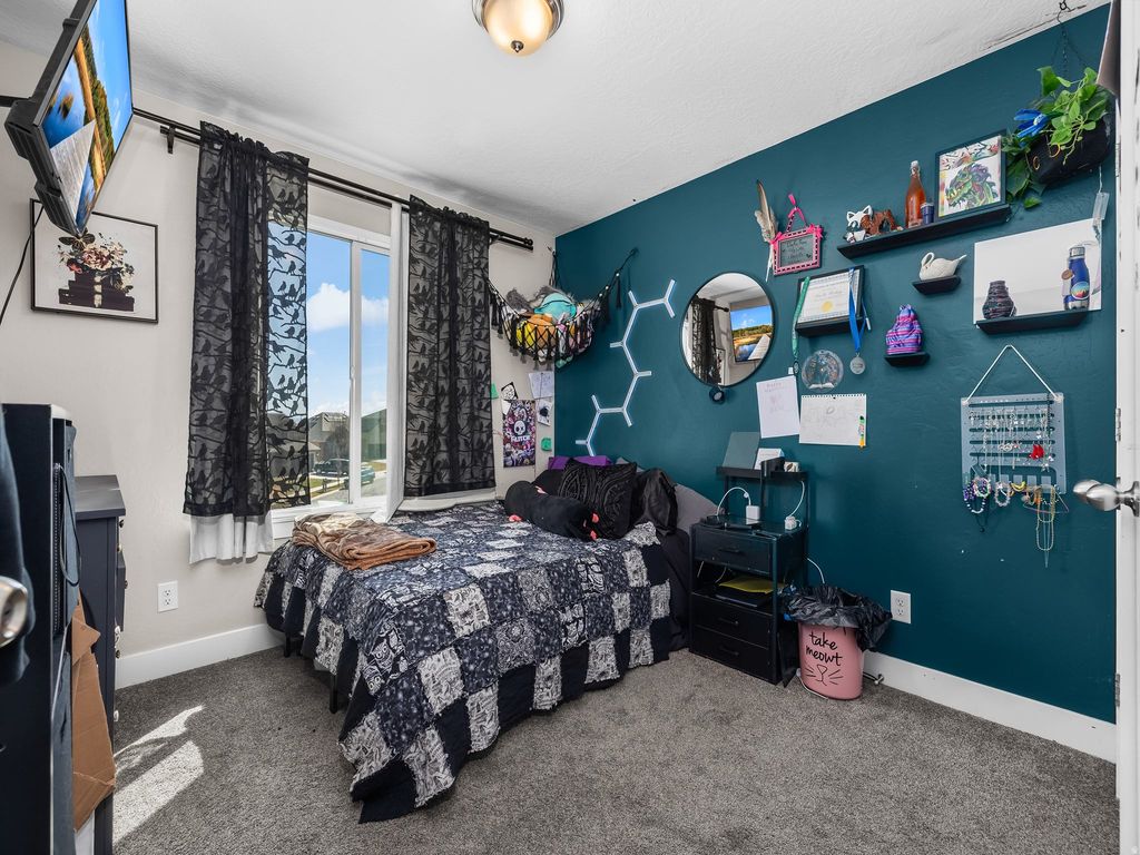 Enjoy incredible mountain and lake views from this beautiful Eagle Mountain home located on the desirable south mountain side facing Mount Timpanogos. Situated on a spacious quarter acre lot that backs directly to the mountain, this property offers rare privacy with no neighbors behind you and breathtaking scenery from both the front and backyard. Inside you will find a bright and open layout with vaulted ceilings, laminate flooring, and granite countertops in the kitchen. The home features five bedrooms and three bathrooms, including a spacious primary suite with a walk in closet. Plantation shutters add a touch of elegance to several of the windows throughout the home. Step outside to a large backyard with plenty of space to enjoy the outdoors, plus a deck that is perfect for relaxing or entertaining while taking in the views. With a two car garage and plenty of room both inside and out, this home offers the perfect balance of comfort, privacy, and scenic surroundings.