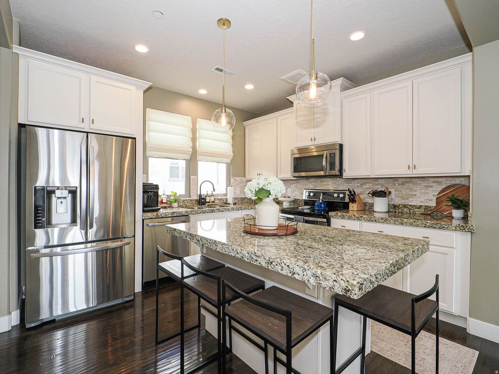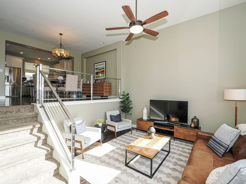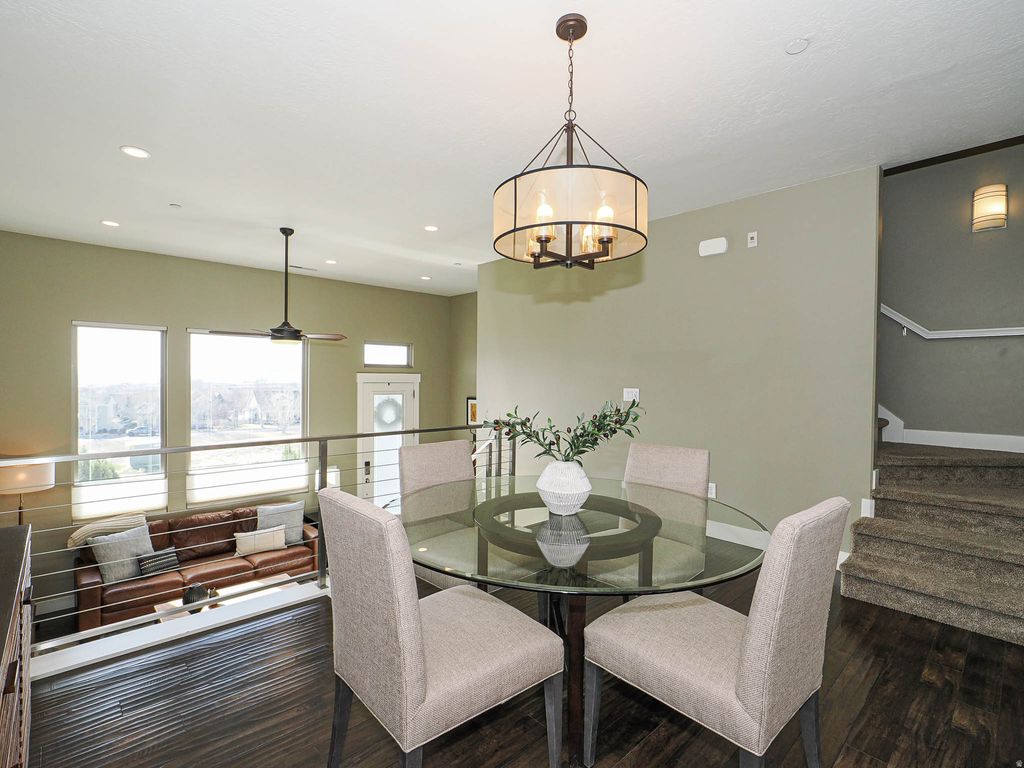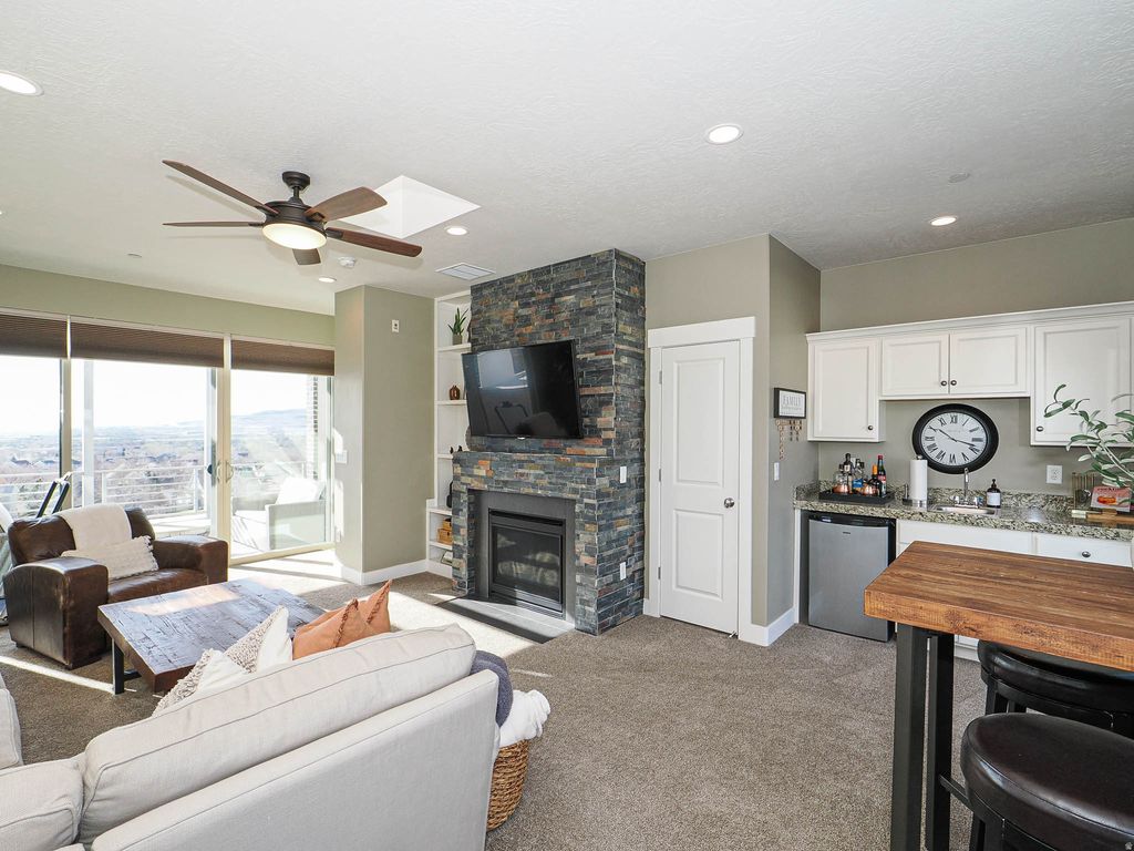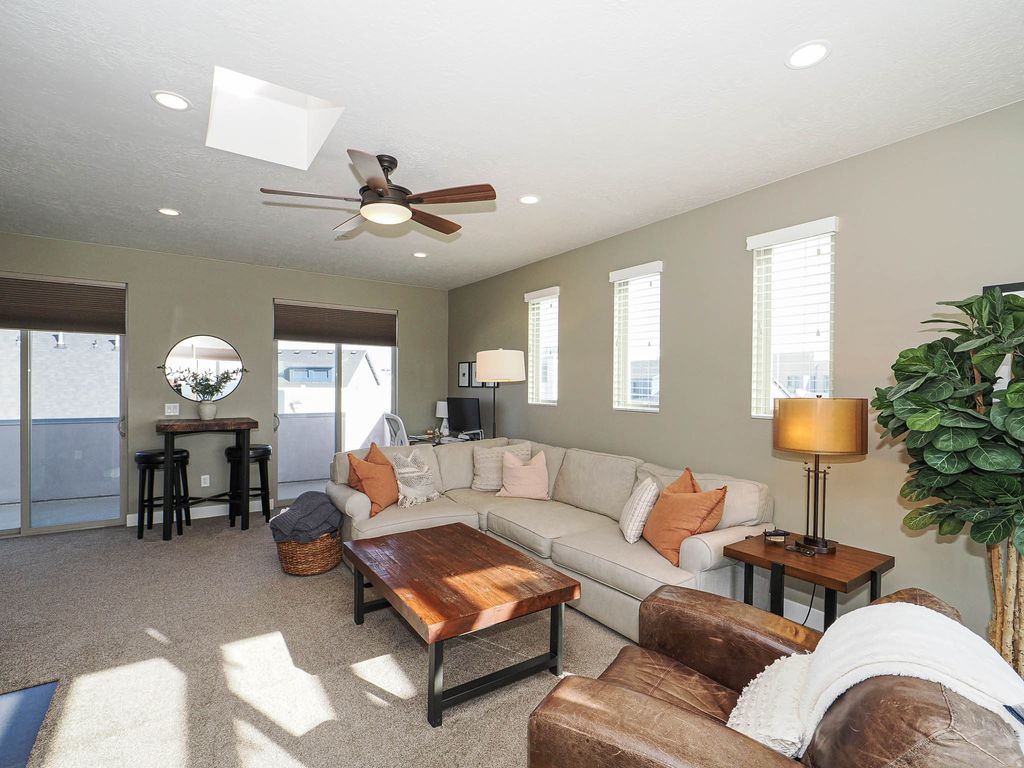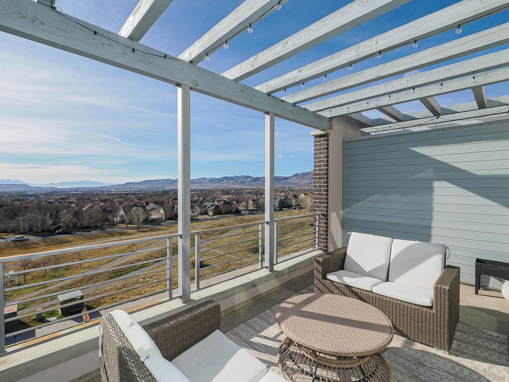 Welcome Home! This isn't just a house; it's a retreat. From the moment you ascend the front steps, you are embraced by the warmth and comfort of this perfectly situated ridge-side home. Designed to blur the lines between indoors and out, the breathtaking views are seamlessly incorporated into every level of the living space. Step inside to a meticulously maintained interior where oversized windows flood the home with natural light. The main living area flows effortlessly into a chef-inspired kitchen-thoughtfully laid out for both quiet family dinners and lively entertaining. The primary suite is fit with walk-in closet and a calming primary bath. The true showstopper of this home is the top-level "Skybox." Whether you're hosting guests or looking for a quiet place to watch the sunset, this space offers remarkable, panoramic views that truly must be seen in person to be believed. The Daybreak lifestyle takes you beyond your front door. You are perfectly positioned to enjoy the best of Utah's premier master-planned community. You're a short stroll to high-end dining, boutiques, and summer concerts along with Oquirrh Lake & Watercourse. Enjoy kayaking, paddle boarding, and miles of waterfront trails. Then, enjoy amenities galore including multiple pools, community centers, and over 40 miles of hiking and biking paths.