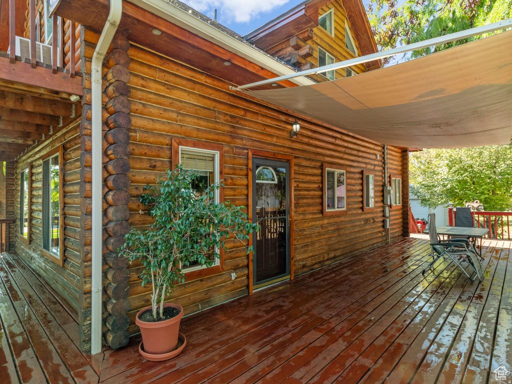 Discover a rare blend of rustic charm and city convenience in this beautifully crafted 3-bedroom, 2-bath log cabin nestled right in the heart of the city. This unique home offers the warmth and character of a mountain retreat while keeping you close to everything urban living has to offer. Step inside to an inviting open-concept living space filled with natural light and rich wood finishes that create a warm, cozy atmosphere. The kitchen features generous lots of cabinet space, counter space, and a breakfast bar, making it perfect for everyday living and entertaining. The primary suite provides a peaceful escape with its private en-suite bath and walk-out balcony, ideal for enjoying quiet mornings. Two additional bedrooms offer flexible space for family or guests, while a bonus room in the basement could easily serve as a home office, gym, or hobby room. Outside, relax or entertain on the wraparound deck surrounding the home, where you can enjoy the feel of nature while still being minutes from parks, shopping, dining, and city amenities. This one-of-a-kind property offers the best of both worlds-the tranquility of cabin living with the convenience of city life. Schedule your showing today and experience it for yourself! Square footage figures are provided as a courtesy estimate only and were obtained from county records. Buyer is advised to obtain an independent measurement.