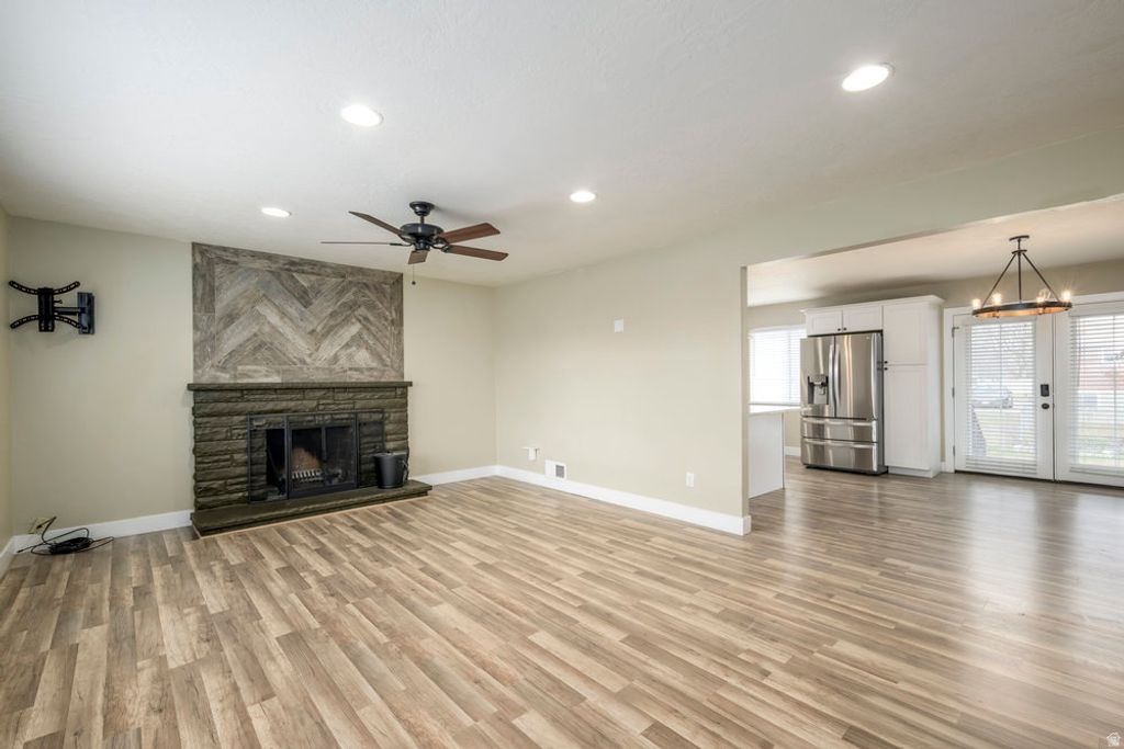 Welcome to your new home! This 5-bedroom, 3-bathroom residence is perfectly nestled in a quiet neighborhood offering the ideal blend of tranquility and convenience. Centrally located just off 9000 South and I-15, you're just minutes away from vibrant shopping, dining, theater, TRAX, and more. This home sits on a large corner lot with a fully fenced yard and two separate driveways as well. Enjoy this summer outside on the backyard patio or relax on the front porch as the sun sets with beautiful mountain views. Three of the bedrooms, including the primary and two full baths, are located on the main level with two additional rooms and one full bath downstairs. This rambler has a fully finished basement that boasts a large family room and an oversized laundry room with plenty of storage. The home contains two wood-burning fireplaces and is equipped with a water softener. There is additional storage with a shed and a storage area attached to the carport. Google fiber is available as well. This is a wonderful opportunity to own in a prime location! Property is tenant-occupied so a 24hr notice before showings is required.