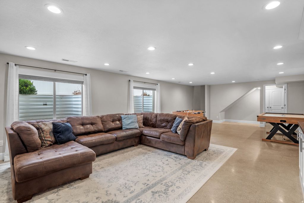 A stunning, meticulously remodeled 5-bedroom rambler that perfectly blends modern luxury with the charming, family-friendly vibe of Mapleton. Nestled in this peaceful, growing community at the base of the stunning Maple Mountains, this single-level beauty has been thoughtfully updated inside and out, offering turnkey living with no detail overlooked. Step inside to discover a bright, open layout featuring fresh paint throughout, brand-new flooring, and elegant new cabinets that elevate every space. Modern finishes highlight the remodeled kitchen and Master Suite. Upstairs, you'll love the expansive laundry/craft room-a rare and practical bonus that provides plenty of space for hobbies, organization, or even a home office setup. The fully finished basement expands your living options with a large, inviting entertaining area ideal for movie nights, game days, holiday gatherings, or hosting friends and family. Additional updates include a newer AC unit, furnace, and hot water heater for year-round comfort and peace of mind. The freshly landscaped yard offers multiple planter and gardening boxes. Mapleton offers the best of small-town Utah living-friendly neighbors, excellent schools in the Nebo District, abundant parks, scenic trails, and easy access to outdoor adventures in Maple Canyon, while being just a short drive from Provo, BYU, and the vibrant Utah County amenities.