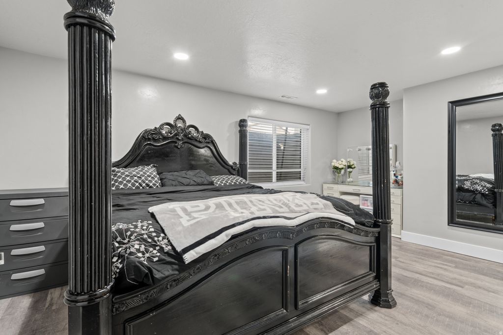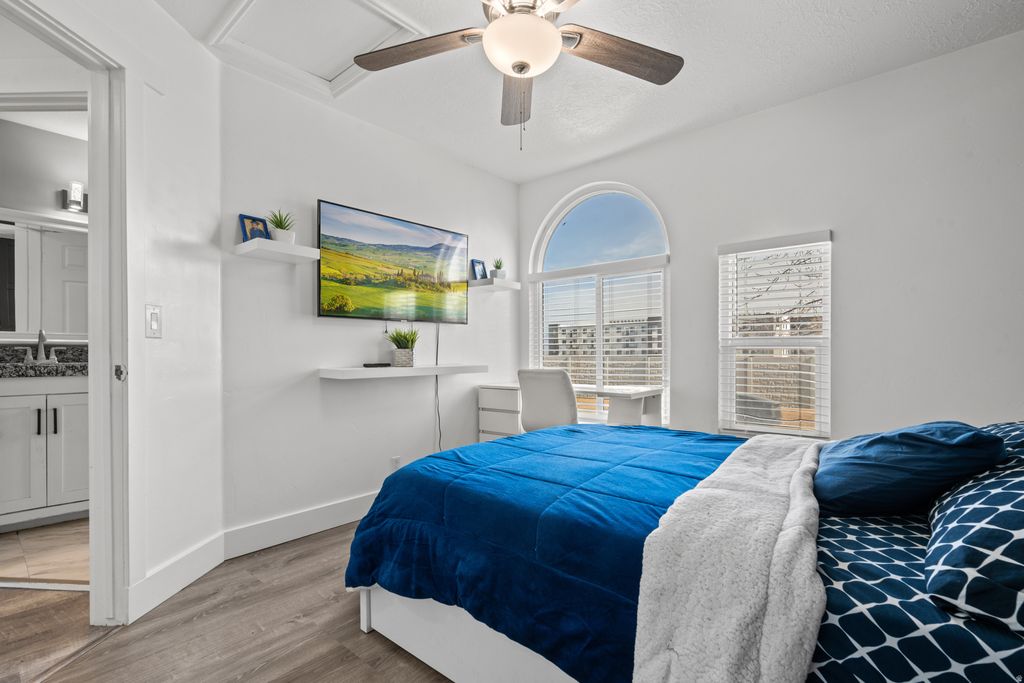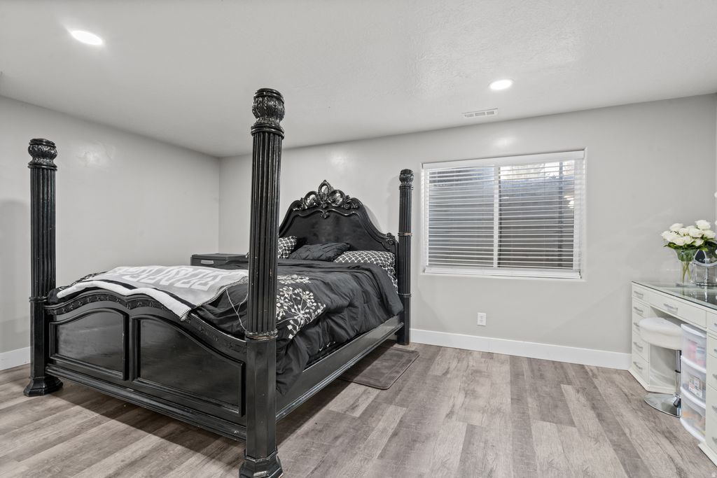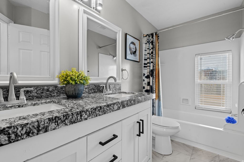 Beautifully upgraded home tucked into a quiet, desirable neighborhood, featuring high-end finishes and carefully selected design elements throughout. Thoughtfully renovated by the owner with quality and craftsmanship in mind, every detail was chosen to create a space that feels both refined and welcoming. Inside, upgraded flooring, a bright open layout, and abundant natural light create an inviting atmosphere. The kitchen serves as the centerpiece of the home, showcasing elegant white cabinetry, gold hardware, premium countertops, stainless steel appliances, and a spacious island perfect for entertaining and everyday living. The main living areas highlight stylish accent walls, recessed lighting, and refined finishes that add warmth and character. Bathrooms have been beautifully updated with modern vanities, custom tile work, and upscale fixtures that elevate each space. The bedrooms are spacious and comfortable, including a beautifully finished primary suite designed as a relaxing retreat. Outside, the fully fenced backyard provides the perfect setting for gatherings, pets, or quiet evenings. The attached two-car garage features durable epoxy flooring, with additional public parking conveniently available. Located near schools, parks, shopping, and commuter routes, this home offers a rare blend of thoughtful upgrades, quality craftsmanship, and modern comfort.