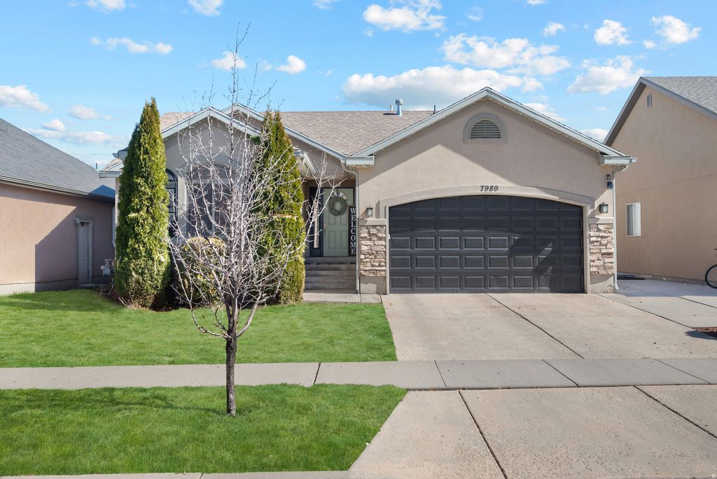 Rambler in Jordan Hills Fully Finished Basement | Upgrades | Move-In Ready Stop your search for the perfect "turn-key" home. Nestled in the sought-after Sycamores at Jordan Hills, this 6-bedroom, 3-bathroom rambler has been meticulously cared for to offer a move-in experience that feels like new construction without the wait. The moment you walk in, you are greeted by natural light and stunning new light oak LVP flooring. The heart of this home is the upgraded kitchen, featuring premium cabinetry, a GE double gas range, and high-end LG stainless appliances. The central breakfast island serves as the perfect gathering spot for morning coffee or casual afternoon snacks. This custom feel extends throughout the main level, with upgraded cabinetry in both the kitchen and bathrooms on the main level. Whether you're hosting a holiday dinner in the dining area or relaxing by the gas fireplace in the living room, every corner feels fresh, clean, and intentional. While many Utah homes struggle with the summer heat, this property offers a premier west-facing orientation. This means your front yard catches the morning glow, while your backyard and updated vinyl deck stay naturally shaded all afternoon and evening. It is the ultimate setup for summer BBQs and outdoor gatherings in cool, shaded comfort. The beautifly finished lower level is a true standout and the ultimate family gathering point. The expansive family room is the definition of "cozy"-centered around a warm electric fireplace and a custom built-in entertainment center with integrated shelving. It's the kind of space where memories are made.Versatile Living: 3 additional bedrooms and a full bath provide space for everyone. Future Potential: One room (currently a salon) is already plumbed, offering an easy transition for a future basement kitchen, mother-in-law suite, or a home offic-business. Enjoy total peace of mind with a new AC unit, a Nest smart thermostat, and two large above-garage storage units. The exterior is just as smart, featuring permanent Bluetooth holiday lighting and an automated sprinkler system. Located just minutes from top-rated schools with rapid access to Mountain View Corridor and Bangerter Highway, this home combines a quiet community feel with an unbeatable Salt Lake Valley commute.