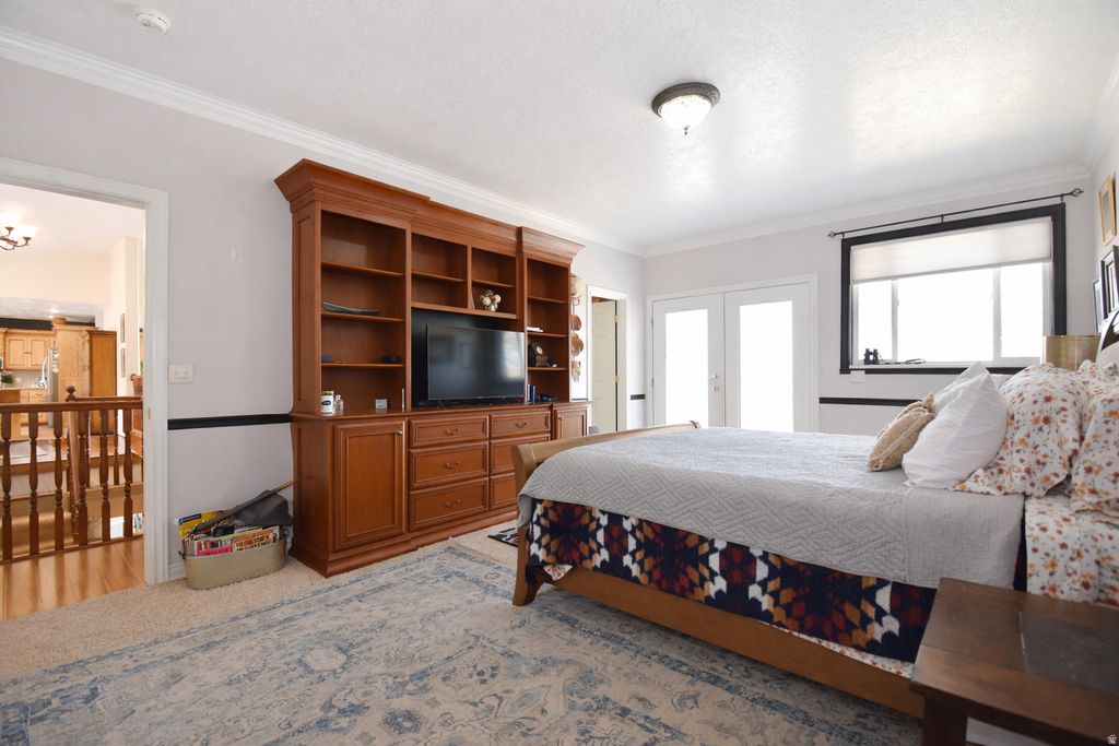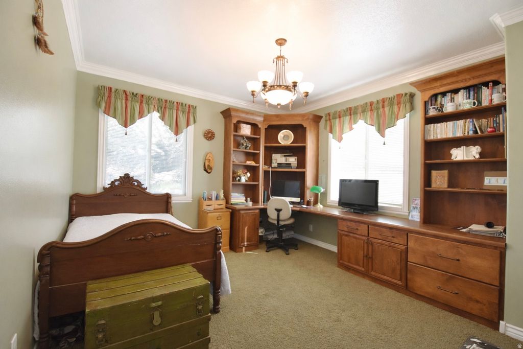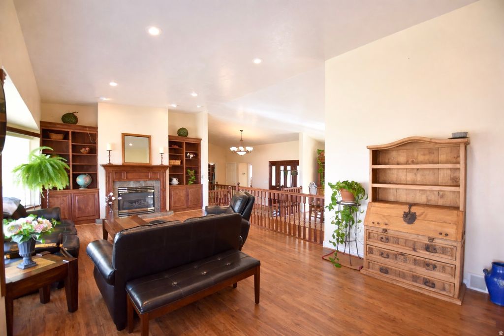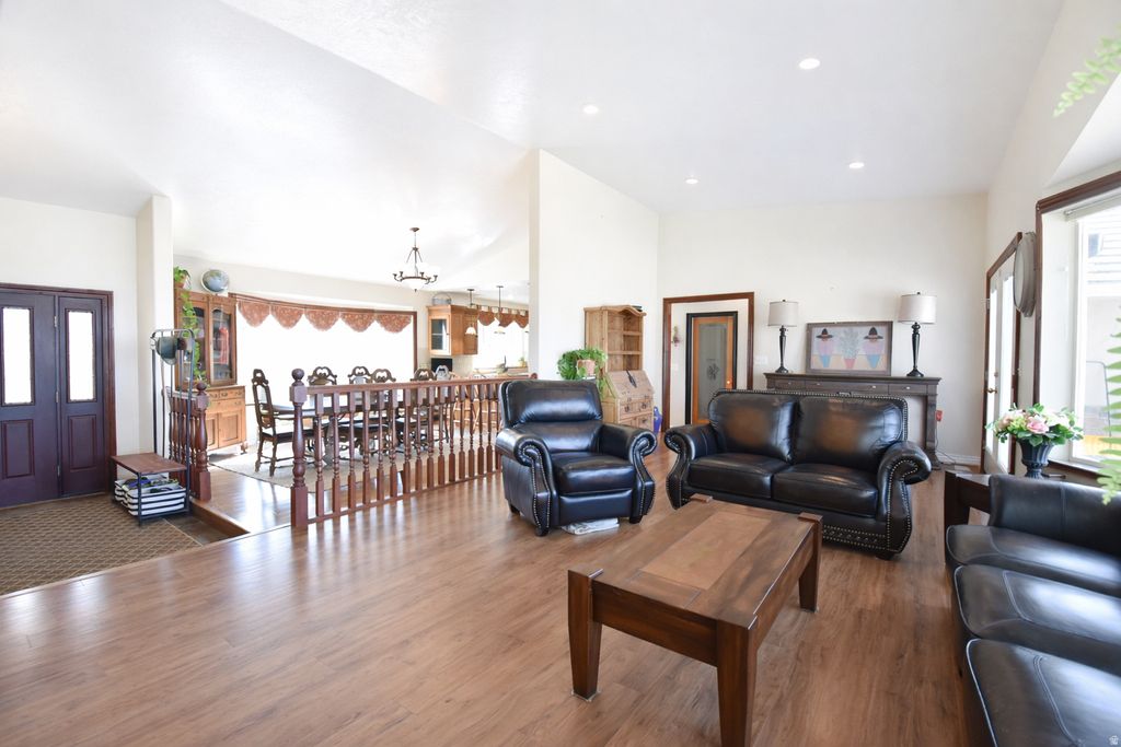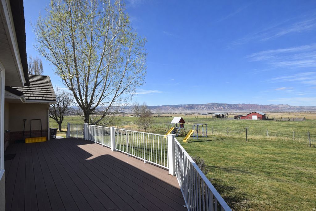 Beautiful fully finished home large open layout and quality updates throughout. This home features an updated kitchen with granite countertops, vaulted ceilings, lots of windows making a bright open living area great for entertaining. 4 Large bedrooms, dedicated office space with built ins, 2 fireplaces, and a walk-out basement with direct access to a covered patio. The main level opens to a balcony/deck with expansive mountain and valley views, creating seamless indoor-outdoor flow. Additional highlights include a 3-car garage, RV parking, and abundant interior and exterior storage. Situated on 4.83 acres with 4 water shares, the property provides usable, versatile land ideal for a variety of uses. The acreage includes a mix of grass pasture and alfalfa fields, along with fruit trees and a dedicated vegetable garden area. A 1,650 sqft barn with tack shed and 4 horse stalls this home is well-equipped for equestrian and farm use, plus additional space for storage, and animals. A well-rounded property offering space, functionality, and views. This is a must see, check out the virtual tour!