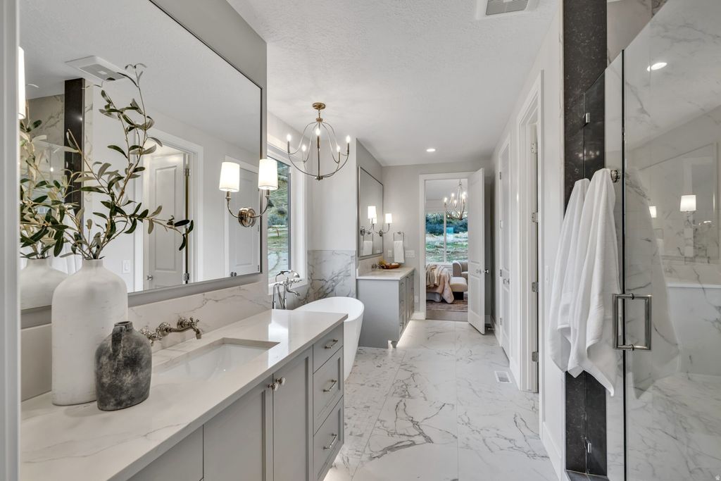 The Charlotte floor plan. Transitional 2 story home in Maple Hills. It features main floor primary suite, spacious primary bath and a sizable walk in closet. Butler Pantry, 2 story family room, GE Monogram appliance with fridge/freezer combo, pergola covered deck and thoughtful designer touches through out the home. A private basement entrance for easy future finish or ADU. Lot faces west with incredible views of the mountains in back and the Valley in front. Ample room for a shop or pool or both. Call to day for you personal showing. Check out the virtual tour.