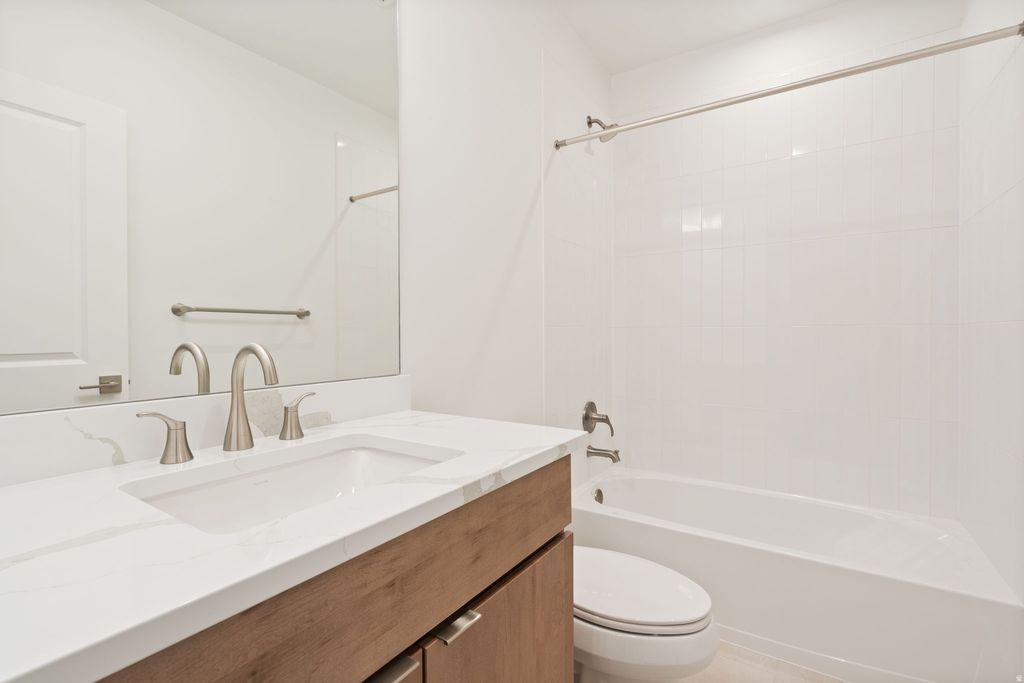 Move In Ready! Experience refined single-level living in this stunning Chelser rambler, showcasing a sleek mountain modern exterior. Enjoy effortless indoor-outdoor living with a spacious covered back patio, accessible from two sliding doors. Inside, 10-foot main floor ceilings and a cozy fireplace create an open yet inviting atmosphere. The gourmet kitchen features elegant cabinetry and quartz countertops, perfect for both everyday living and entertaining. Retreat to the luxurious primary bathroom with designer tile finishes and elevated style. Additional highlights include a laundry room with utility sink and a fully finished basement offering a massive gathering space, a bedroom with ensuite bath, and two additional guest rooms-ideal for family or guests.