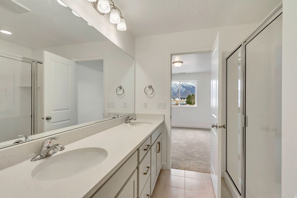Welcome to the Harvard plan, a beautifully designed townhome located in the popular Harmony Place community in Salem. This home blends modern finishes with functional spaces, creating a perfect setting for comfortable everyday living. The kitchen features stainless steel gas appliances, quartz countertops, and 42" upper cabinets, offering both elegance and practicality. The primary suite is a relaxing retreat with dual sinks, a shower with a subway cultured marble surround, a quartz countertop vanity, and a private door at the bath. A second full bath includes an undermount sink with quartz countertops, while the powder bath on the main level is finished with a pedestal sink. With 9-foot ceilings on the main floor, upgraded railing on both levels, pre-plumbing for a future water softener, and an 8-foot garage door, this home is thoughtfully built for both style and convenience. The Harvard plan in Harmony Place offers quality finishes and smart design in a vibrant community-making it a must-see for buyers seeking modern townhome living in Salem.