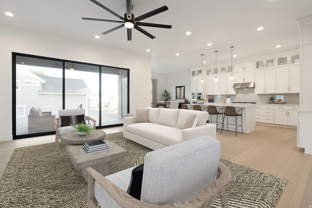 Move-in-Ready! The Chelser's inviting covered entry and foyer open immediately into the bright great room and kitchen, revealing views of the casual dining area, and desirable luxury outdoor living space beyond. The well-designed kitchen is equipped with a large center island, plenty of counter and cabinet space, and sizable walk-in pantry. The marvelous primary bedroom suite on the main floor is complete with a walk-in closet and deluxe primary bath with dual-sink vanity, luxe glass-enclosed shower, and private water closet. Secondary bedrooms feature ample closets and shared Jack-and-Jill bath. Entertain in the finished lower level complete with a spacious gathering space, three bedrooms and two full bathrooms. Additional highlights include a rough plumbing for a future basement kitchen, centrally located laundry room, and additional storage throughout.