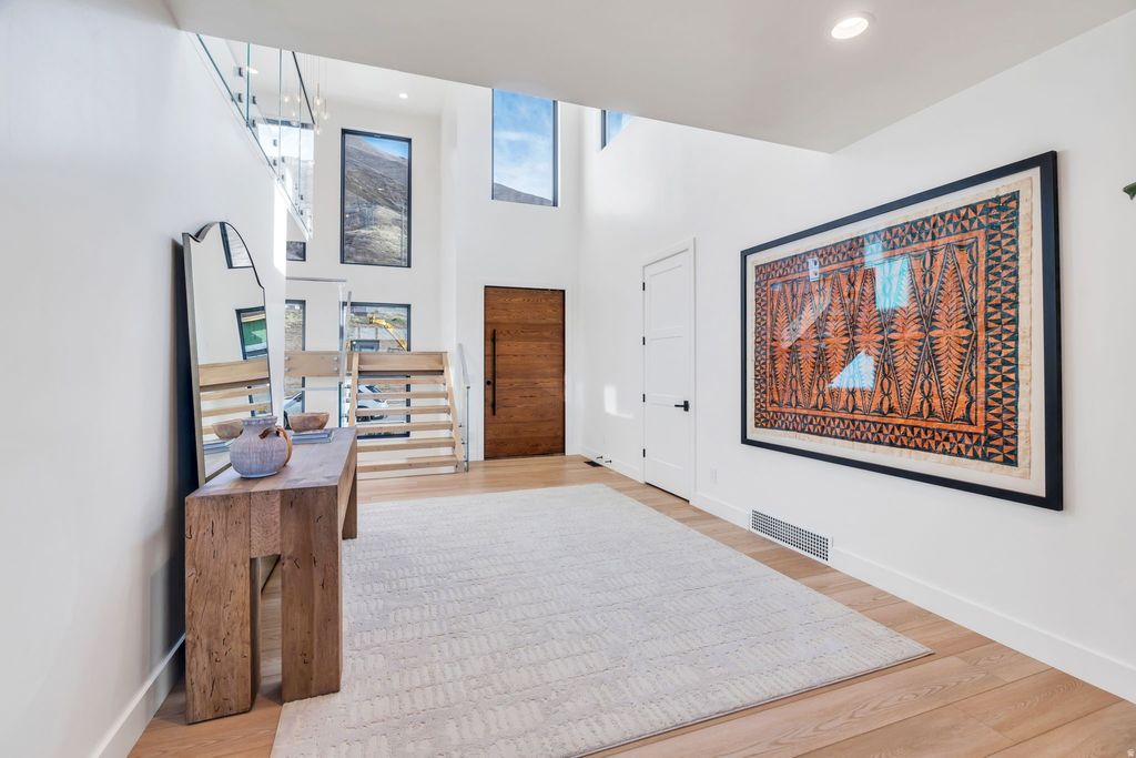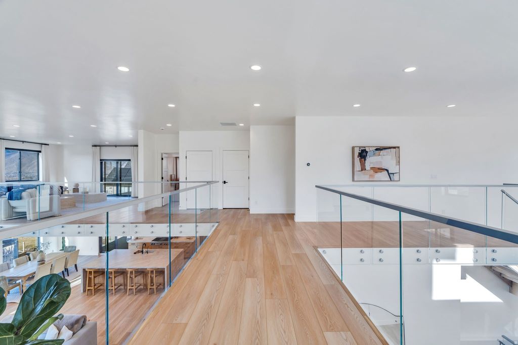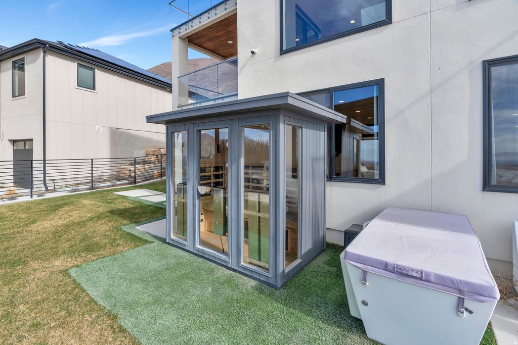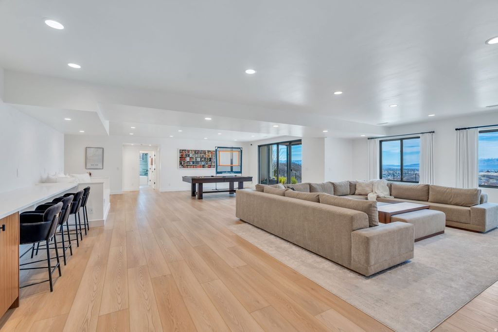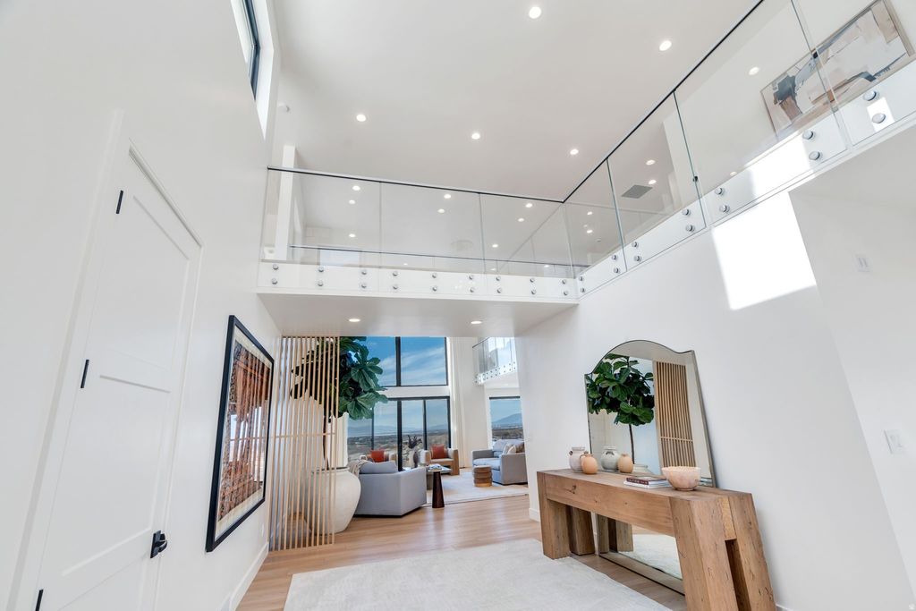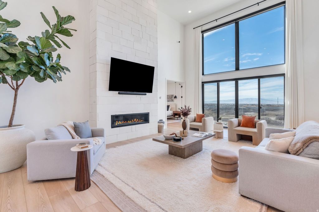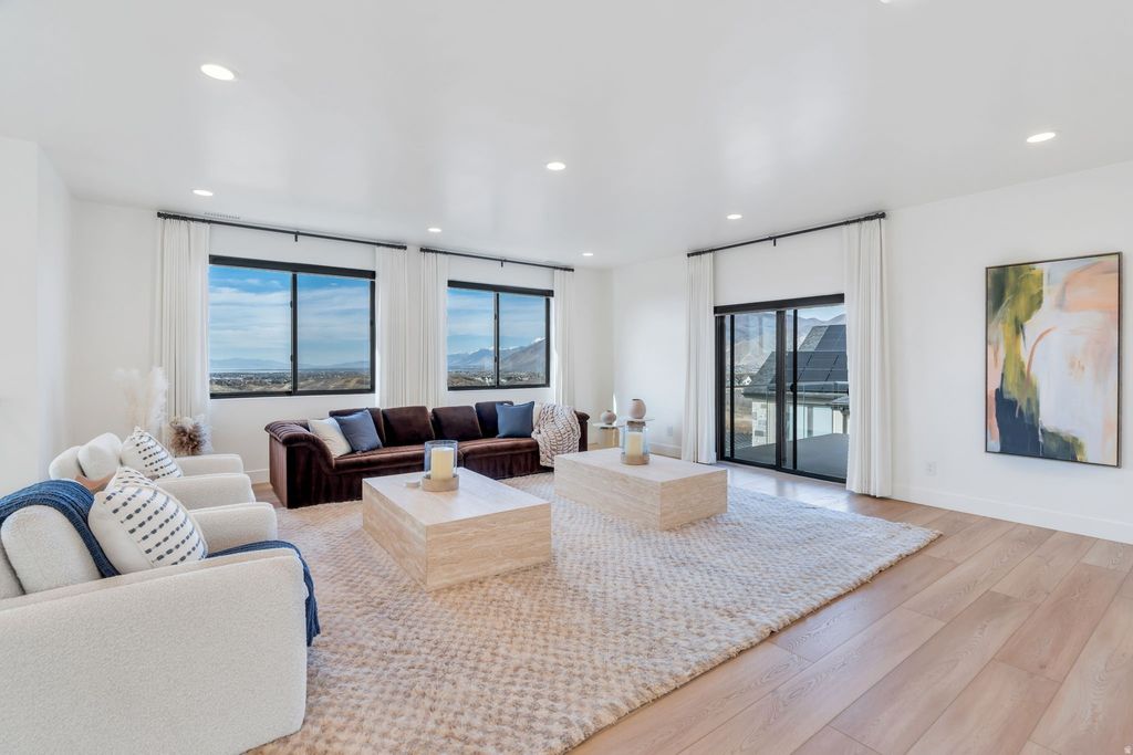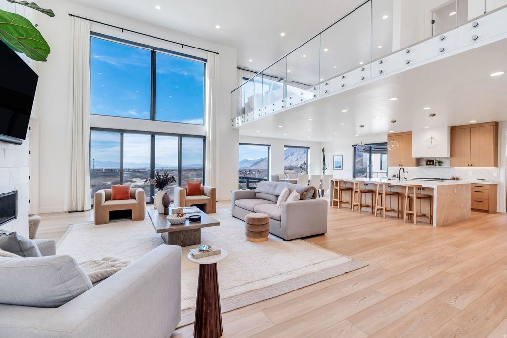 Experience elevated living in this stunning Mapleton estate, where sweeping panoramic views and dramatic two-story windows in the great room frame the mountains and valley like a painting! The spacious family room is ideal for hosting guests with it's expansive 19' ceilings, chic built-in fireplace and expansive windows allowing for abundant natural lighting. Gorgeous, light-colored flooring coasts to the modern Kitchen showcasing lovely accent slab Oak cabinetry, gorgeous Quartz tops, an expansive island with a built-in sink and more! The primary suite offers a true retreat with an oversized walk-in closet and a spa-inspired bath featuring a walk-in shower and soaker tub combo. Downstairs you'll find a spacious Family Room with a dry bar and several daylight walkouts accessing the gorgeous yard. Multiple balconies invite you to take in the breathtaking scenery from every angle, while the backyard is designed for unforgettable entertaining with an in-ground trampoline, outdoor kitchen, and inviting lounge space complete with a swinging bed. This is a rare opportunity to own a home that blends luxury, comfort, and unforgettable views in one exceptional setting! Schedule a showing and come tour this beautiful home today!
