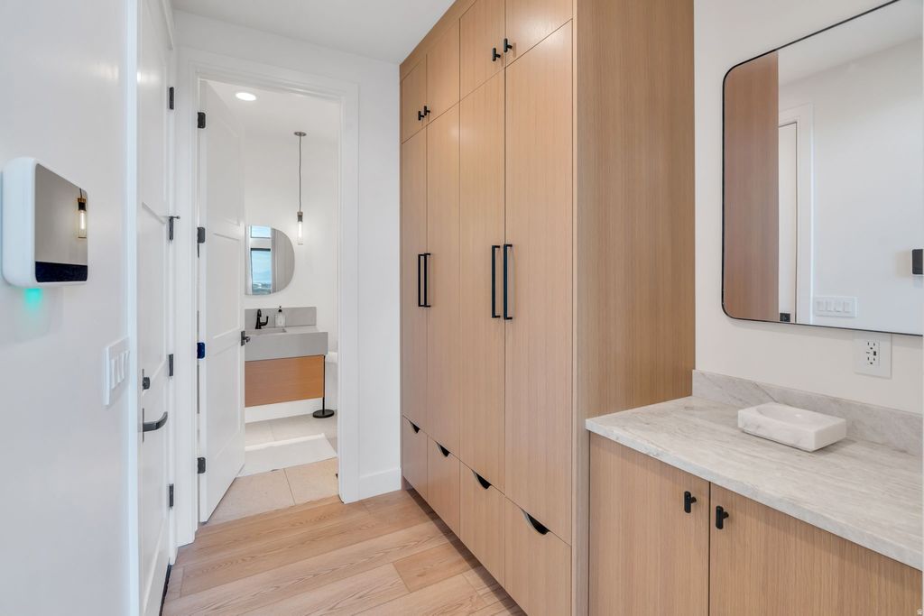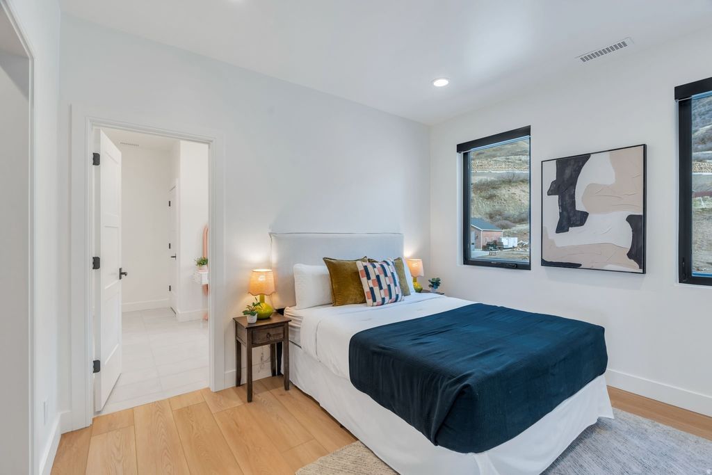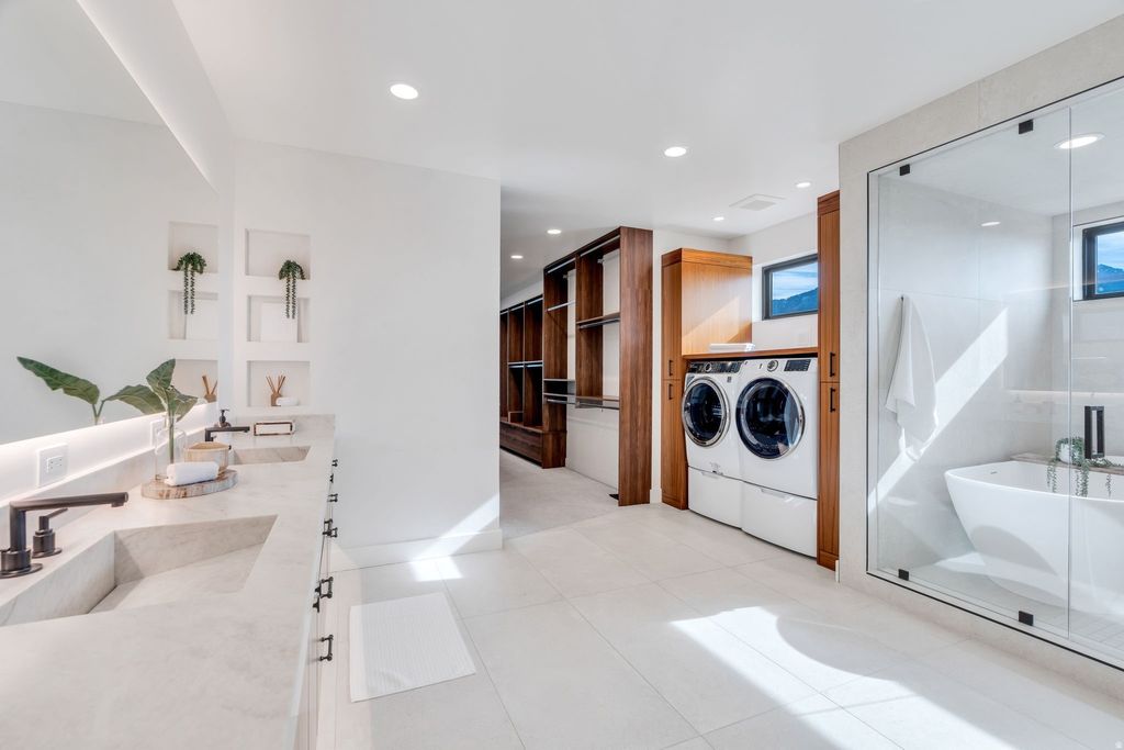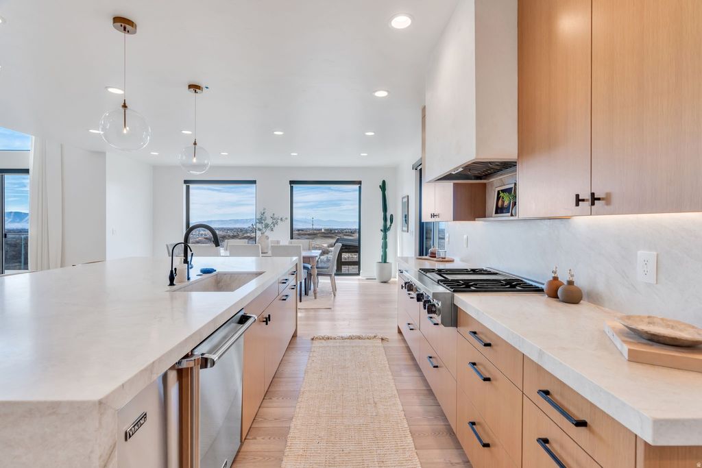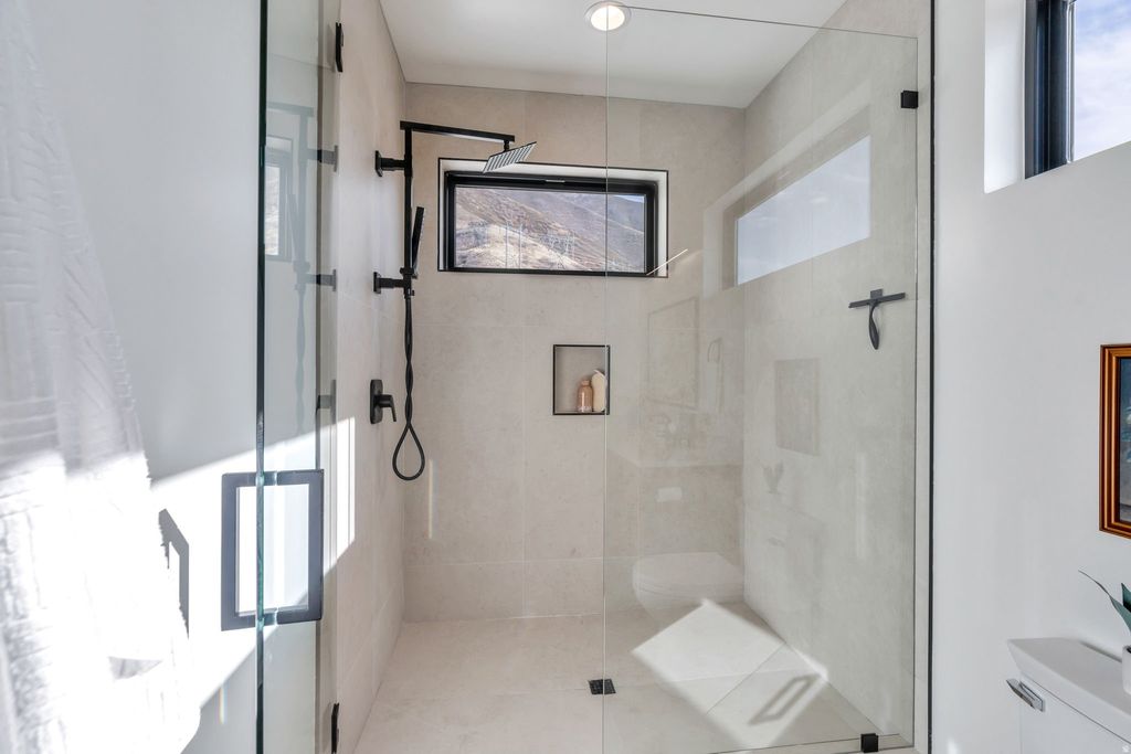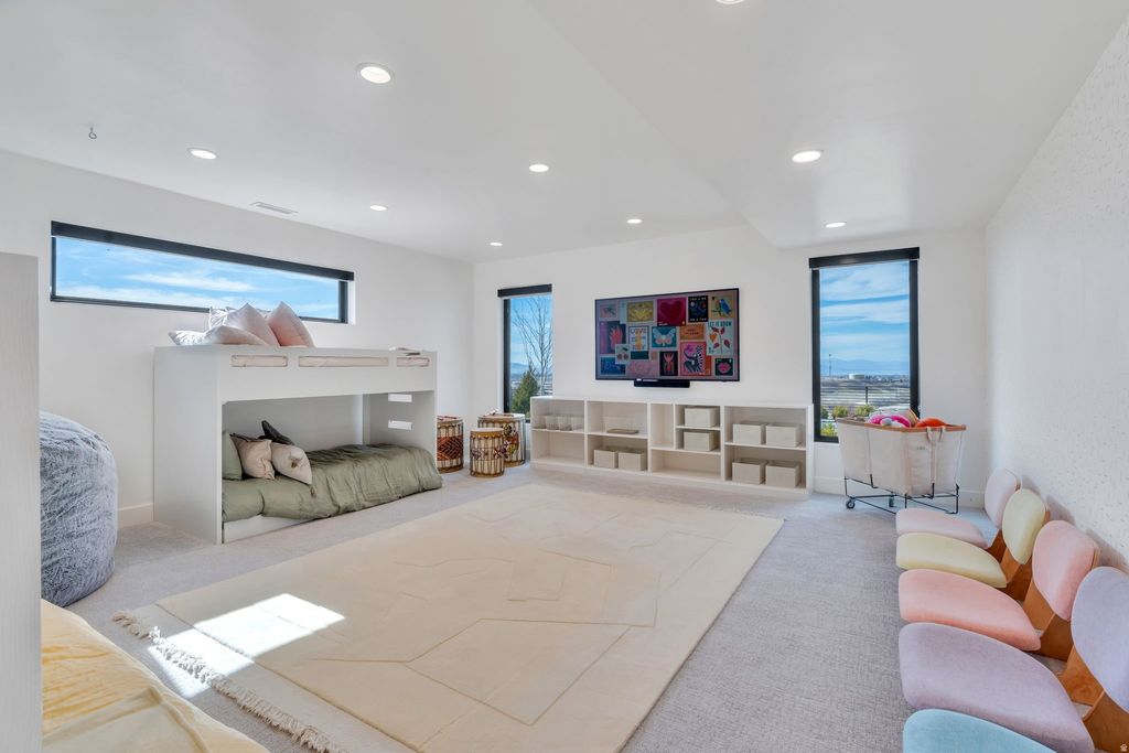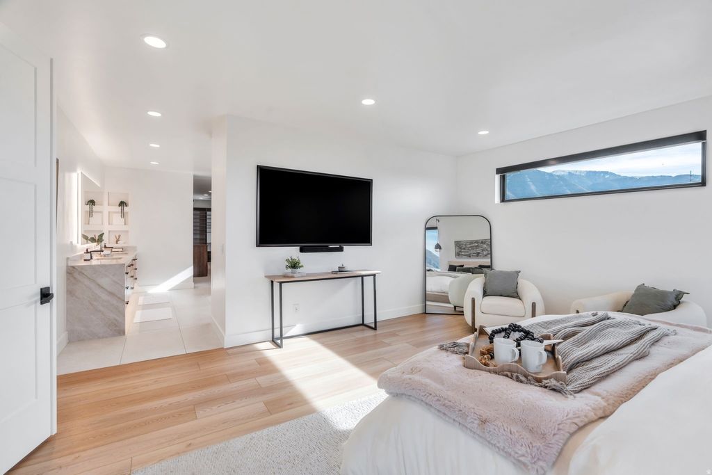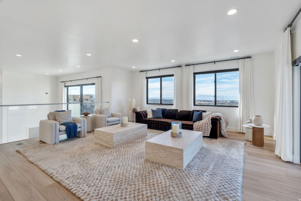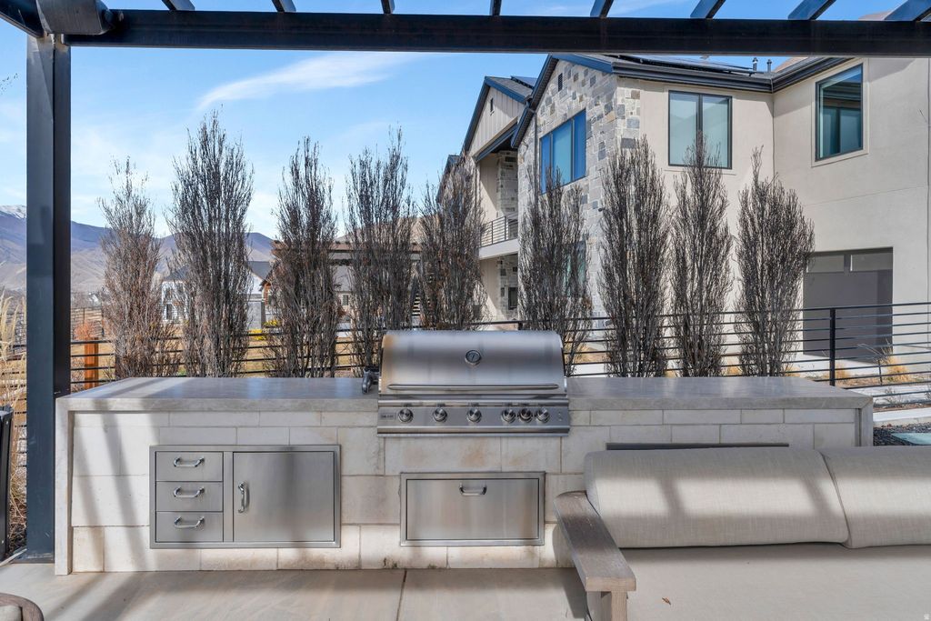 Experience elevated living in this stunning Mapleton estate, where sweeping panoramic views and dramatic two-story windows in the great room frame the mountains and valley like a painting! The spacious family room is ideal for hosting guests with it's expansive 19' ceilings, chic built-in fireplace and expansive windows allowing for abundant natural lighting. Gorgeous, light-colored flooring coasts to the modern Kitchen showcasing lovely accent slab Oak cabinetry, gorgeous Quartz tops, an expansive island with a built-in sink and more! The primary suite offers a true retreat with an oversized walk-in closet and a spa-inspired bath featuring a walk-in shower and soaker tub combo. Downstairs you'll find a spacious Family Room with a dry bar and several daylight walkouts accessing the gorgeous yard. Multiple balconies invite you to take in the breathtaking scenery from every angle, while the backyard is designed for unforgettable entertaining with an in-ground trampoline, outdoor kitchen, and inviting lounge space complete with a swinging bed. This is a rare opportunity to own a home that blends luxury, comfort, and unforgettable views in one exceptional setting! Schedule a showing and come tour this beautiful home today!