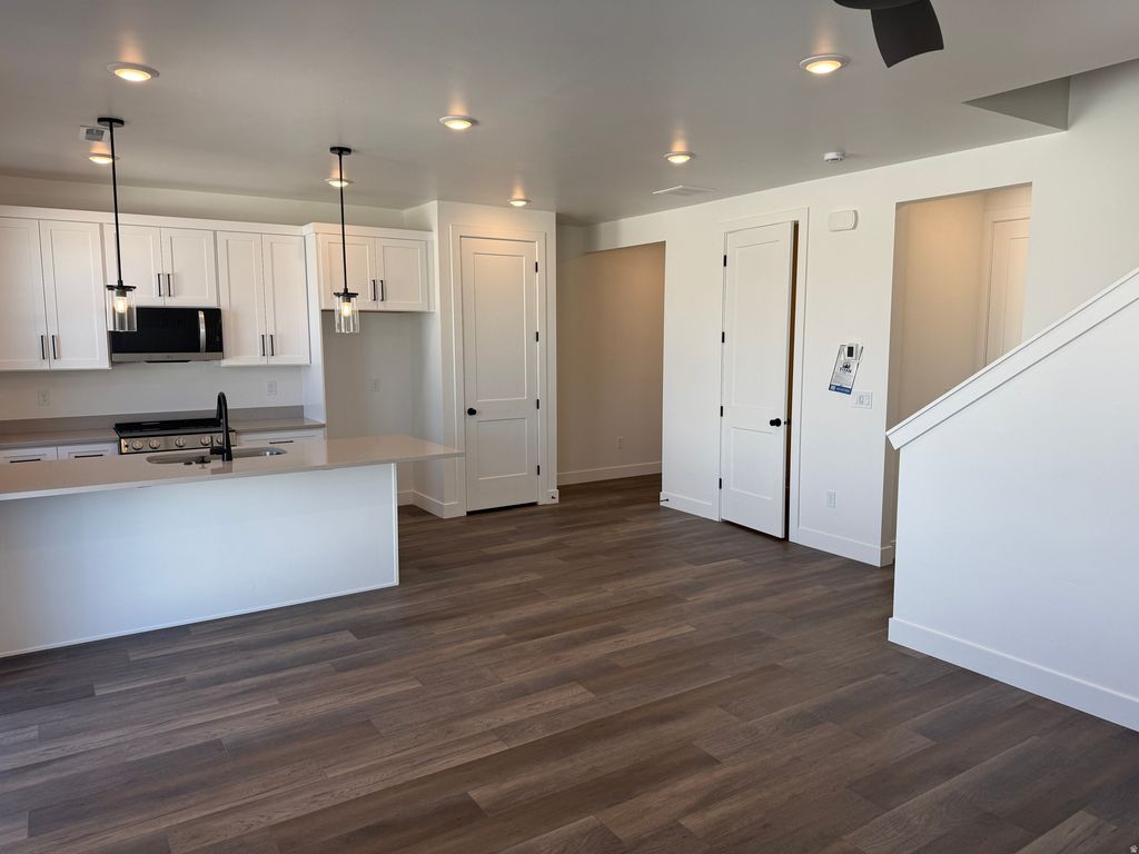 Welcome to this thoughtfully designed mid-unit, 2-story townhome an excellent opportunity to **start building equity in your future** . This home offers 3 bedrooms, 2.5 bathrooms, and a 2-car garage, combining modern finishes with a layout that lives comfortably and efficiently. The main level is open and inviting, featuring 9' ceilings, durable waterproof LVP flooring, and a kitchen designed to be both functional and stylish. Highlights include quartz countertops, 42" cabinetry, soft-close drawers, pull-out shelving, a large single-bowl stainless steel sink, and a full LG appliance package. The open-concept design allows the kitchen, dining, and living areas to flow seamlessly-ideal for everyday living and entertaining. Upstairs, the primary suite provides a private retreat with a walk-in closet and a well-appointed bathroom. Two additional bedrooms, a full bathroom, and a conveniently located laundry area complete the upper level, offering flexibility for home office use or evolving lifestyle needs. This home includes a strong lineup of **Above Standard Features** such as a 95% efficient Lennox furnace, 14 SEER A/C condenser, Honeywell T9 Wi-Fi thermostat, smart front door lock, upgraded lighting package, ceiling fans, and modern matte black finishes. The 2-car garage includes a dedicated EV/charging outlet location and a MyQenabled opener for added convenience. An unfinished basement provides room to grow and personalize over time. Perfect for future living space, storage, or a home gym. For buyers seeking new construction, thoughtful design, and long-term value, this home delivers. **Call the agent directly to ask about available incentives. ** Early opportunities matter. Be the first to secure your home. Square footage figures are provided as a courtesy estimate only and were obtained from builder plans. Buyer is advised to obtain an independent measurement.