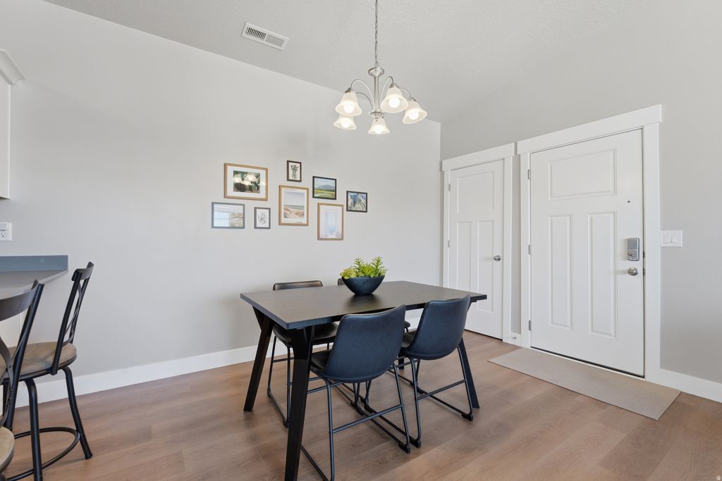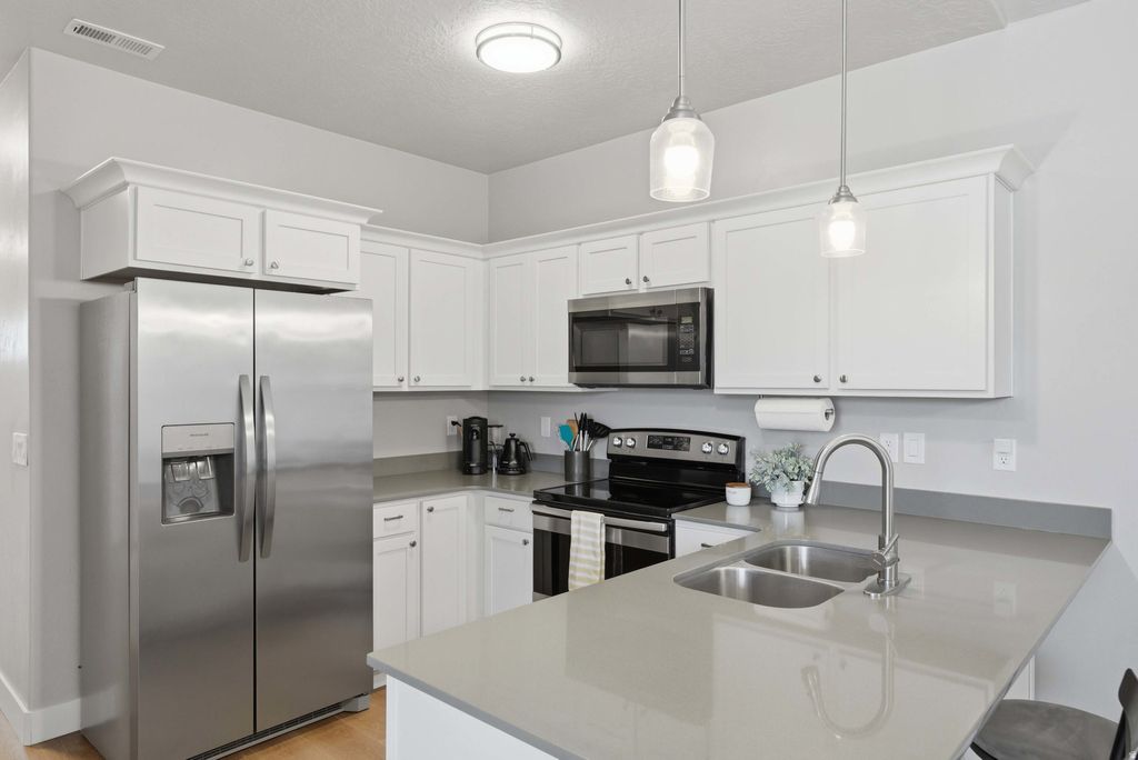 Beautifully updated Herriman condo that feels like new. Recent upgrades include LVP flooring, new carpet, and fresh paint throughout, creating a clean and modern interior. This top floor unit features vaulted ceilings with no upstairs neighbors, adding both privacy and a spacious feel. The covered patio offers a peaceful setting overlooking the walking path with mountain views beyond. All appliances are included, making this home truly move-in ready and easy to enjoy from day one. A one car garage with additional storage space plus a dedicated parking spot directly in front provide convenience and functionality. Enjoy access to community amenities including a pool, and playground. Great location with close access to shopping and the Mountain View Corridor for an easy commute. Square footage figures are provided as a courtesy estimate only and were obtained from county records . Buyer to verify all.