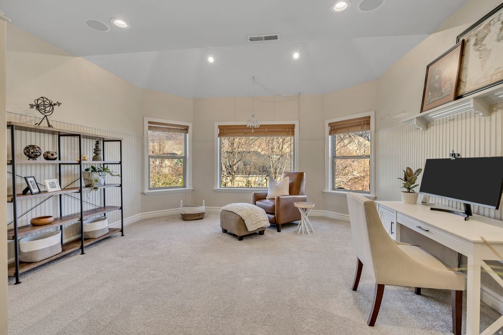 $200K Price Improvement! Now $2,595,000. OPEN HOUSE THIS SATURDAY April 18th, 11:30 - 2:00. RARE OPPORTUNITY in the coveted Twin Rivers neighborhood where people don't want to leave. It's the perfect blend of LUXURY & LOCATION. This is your new WALKABLE life to schools, parks, tennis/pickleball courts, football practice, you name it. Leave your car and just LIVE on this quiet tree-lined street at the CENTER of it all. NEW Roof, NEW Solar, NEW HVAC, NEW Smart Features. The CRAFTSMANSHIP, the WINDOWS AND VIEWS, the real-life function, and open-concept entertaining elements of this home will truly take your breath away. This STUNNING property was built to perfection with its 20' vaulted wood-beam coffered ceiling in the great room - with two story windows filled with east mountain views - and 16' massive kitchen island. Greeted by an impressively curved, freshly carpeted stairway in the entry, be prepared to be charmed from room to room. For starters, the front den with fireplace has unique private access to the primary suite which boasts 14' vaulted ceilings, luxury vaulted bath with stain glass window, mountain-filled bedroom windows, outdoor access to your own private deck, and another outdoor access to the main deck. The updated kitchen with beautiful high-end cabinetry, two Sub-Zero refrigerator/freezers, two Bosch ovens, two dishwashers, a powerful 6-burner 48" Wolf range, and even a butler's pantry. Huge energy savings with the owned Solar panels and double insulation. Fresh NEW paint, solid wood doors and trim everywhere, tall ceilings throughout, meticulously cared-for stone and wood flooring, and warm rock accents that pull you in to stay. The mudroom front entrance is perfect for kids walking to and from school, practice at Burgess Park, or afterschool activities, right into the main floor laundry room, complete with lockers galore and even a "dog food drawer". In fact, this home has three total laundry areas (yes, three) and storage everywhere - including a 6' tall storage room above the primary bedroom closet. Did we mention views? The sweeping new Trex deck off the great room offers stunning outdoor living - a shaded afternoon and evening sanctuary, complete with east mountain views, flowing water feature, and lush mature landscaping with smart sprinklers. Step down to a generous backyard, flat and wide for a pool if you wish, with garden boxes, peach trees, a trampoline and basketball sport court just the right size of a pickleball court. Upstairs you'll find five large, charming bedrooms, each unique and special in their own way- a Juliet balcony here, a loft or two there...all special retreats, along with two full baths. A back stairway off the kitchen takes you up to a second great room and wet bar - perfect for kids and teens. The upstairs features an impressive overlook down to the main level great room, keeping everything feeling open and airy. Also, for the littles in your life, a special loft play area just their size. The walkout basement appeals to downtime and entertaining: movies in the big screen theatre room, guest room and full bath, and a naturally lit yoga room with patio access to the hot tub. And finally, this basement boasts a massive accessory apartment with three bedrooms, two baths, a great room and patio off an enormous kitchen. With its dedicated furnace and two private entrances, this oversized apartment commands a generous monthly income of $2000/month or more. Last, but never least, is the oversized four-car garage with its 13.5' ceilings and extra-tall smart garage doors fit for a boat. Two extra-large storage rooms off the garage keep things put away, and of course a 240V/50A Level 2 EV charger. Outside is an RV pad with a direct sewer connection. Alarm system, Radon Mitigation System, Google Wi-Fi Mesh Network throughout...the extras are simply endless; it's the home of a lifetime. Check out the attached virtual tour video to get a feel for this beaut