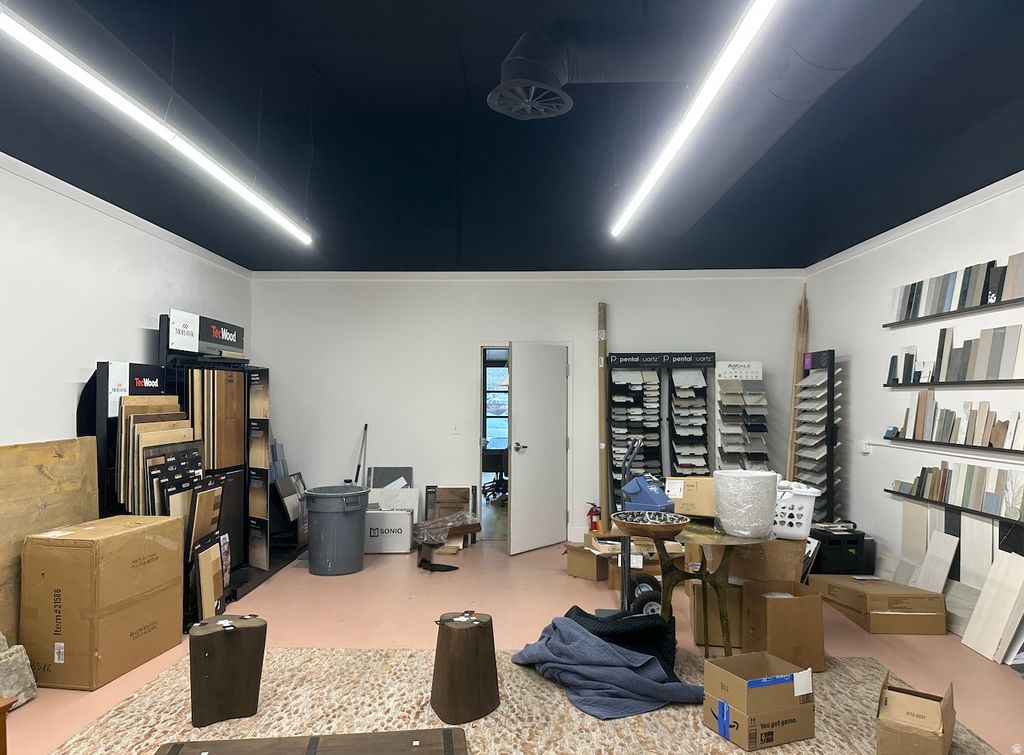 AMAZING LOCATION! Showroom/Studio with attached warehouse, private office with back door entrance and bathroom.