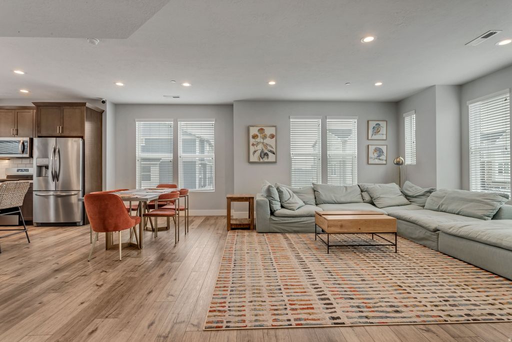 Step into this beautifully maintained end-unit townhome in Draper's highly sought-after Creekside community, where natural light, thoughtful upgrades, and an ideal layout come together effortlessly. Located in a top-rated school district, with shopping, dining, and quick access to Bangerter Highway and I-15, the location truly checks every box. The main level welcomes you with a bright, open living space and large windows that bring in an abundance of natural light. The kitchen is both functional and elevated, featuring upgraded cabinetry, thick quartz countertops, a large single-basin sink, and stainless steel appliances. It's designed for both everyday living and entertaining. Just off the kitchen, step out onto the deck and enjoy the bonus of a creek view. Upstairs, the primary suite offers a peaceful retreat with a spacious bathroom and a walk-in closet. You'll also find a conveniently located laundry room and a second bedroom with its own ensuite bath, creating an ideal setup for guests or additional privacy. The lower level adds even more flexibility with a third bedroom, full bathroom, and direct walkout access to a private, fenced back patio. A generous two-car garage with additional storage space completes the home. Townhomes in this community don't come up often, especially with this combination of row-end natural light, privacy, and thoughtful upgrades. This one won't last long!