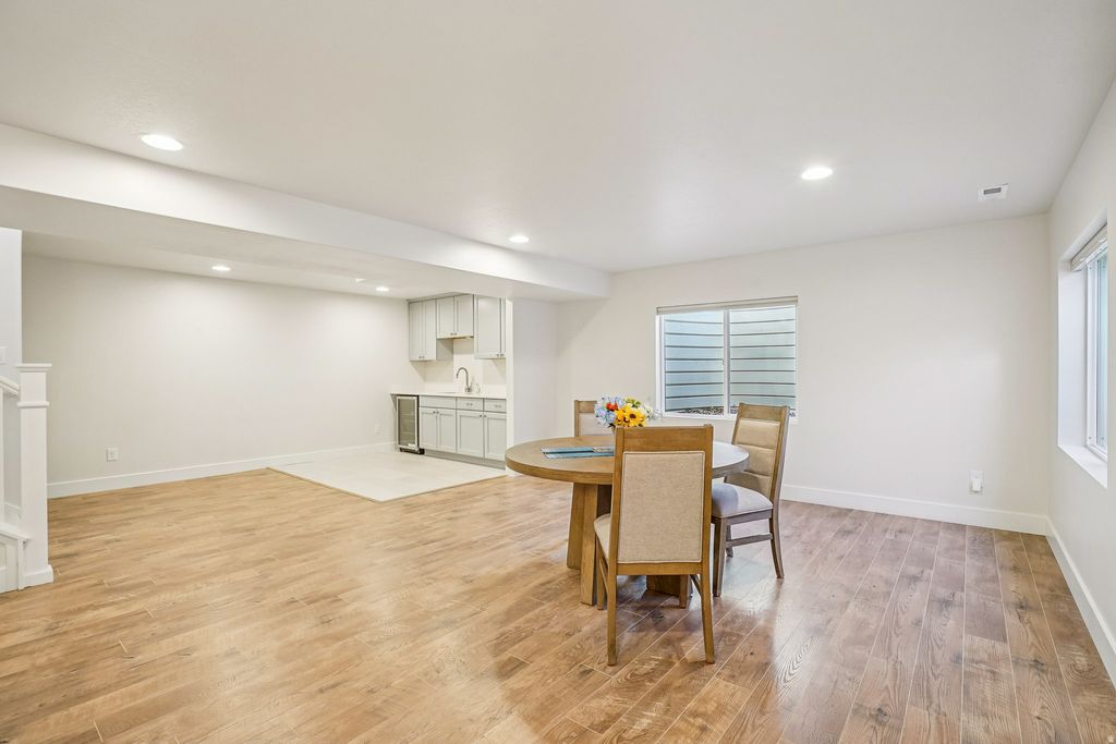 Built in 2021, this Stone Creek ranch home offers efficient main-level living with elevated finishes throughout. The kitchen is well-executed with white shaker cabinetry, quartz countertops, subway tile backsplash, a range hood, and a generous island that naturally becomes the gathering spot. The living room centers on a gas fireplace with a clean white surround, and LVP flooring runs throughout the main level. Vaulted ceilings add light and volume to the primary bedroom and office. The primary suite includes a soaking tub, frameless glass shower, and double vanity. The finished basement functions as a true second living area with a wet bar, small fridge, cabinetry, a bedroom, and full bath. Approximately 800 square feet of insulated, framed space remains unfinished-ready for a gym, theater, or additional bedroom. Take in mountain views from the East facing deck and enjoy a 2-car garage with room for all the gear. Ideally located 30 minutes from Park City and 15 minutes to the Deer Valley expansion-close enough to enjoy it, far enough to avoid the traffic.