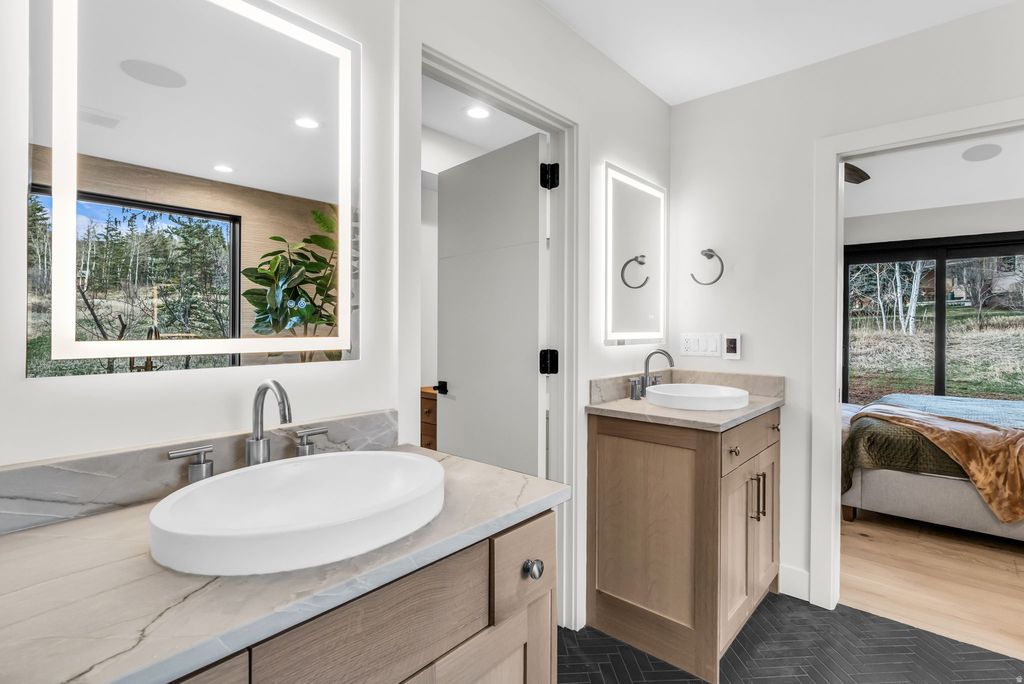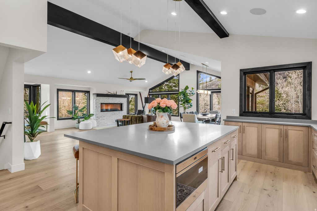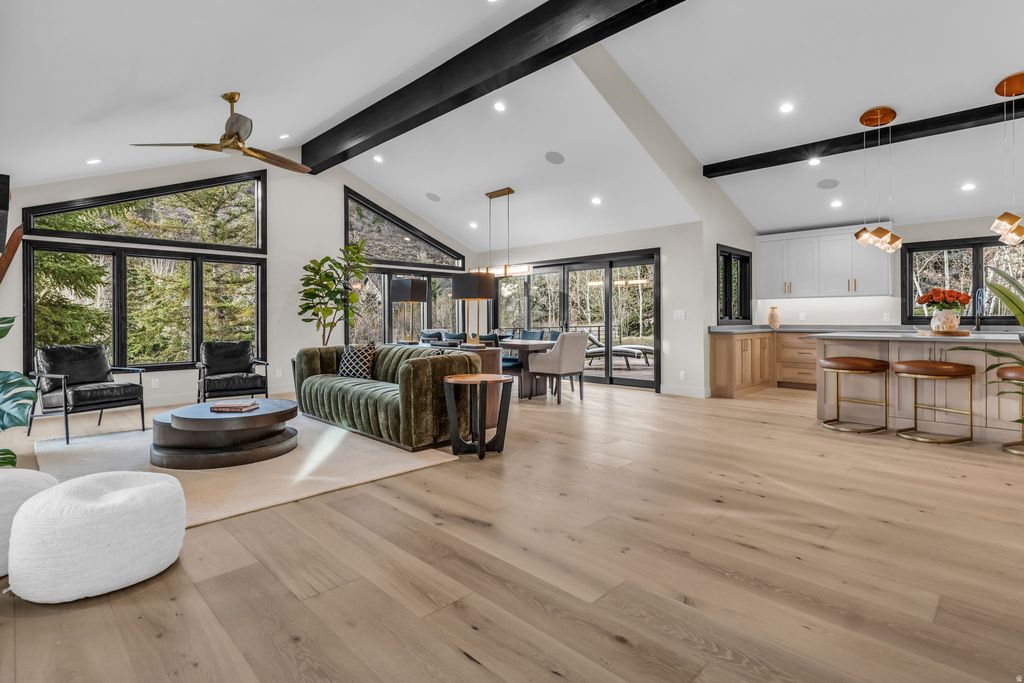 Welcome to this newly reconstructed Pinebrook masterpiece, where mountain elegance meets modern luxury in one of Park City's most desirable neighborhoods. Perfectly positioned on a peaceful .62 acre lot surrounded by mature pines, graceful aspens, and charming apple trees. This exceptional home offers a rare combination of privacy, beauty, and convenience. Just minutes from shopping, parks, trails, tennis, pickleball, and all the best of the Park City lifestyle. Thoughtfully designed for both effortless everyday living and unforgettable entertaining, the bright, open concept floor plan is filled with natural light and elevated by sophisticated finishes throughout. At the heart of the home, the stunning chef's kitchen is a true showpiece, featuring premium Wolf appliances, Sub-Zero refrigeration, two Asko dishwashers, a microwave drawer, wine refrigerator, and a beautifully finished pantry. Perfectly suited for everything from quiet mornings to hosting on a grand scale. Create the mood by easily casting your playlist throughout on the build in Sonos sound system. The main level primary suite is a luxurious private retreat, complete with its own deck, cozy fireplace, spa inspired soaking tub, oversized shower, and a sense of serenity that makes coming home feel like an escape. Two additional bedrooms with a full Jack and Jill bath accompany the primary suite on the main level, offering comfort and functionality for family or guests. Upstairs, the home transforms into an entertainer's dream with a spacious wet bar, dedicated theater, and ample room for a pool or game table, while the adjoining flex room showcases magnificent uphill views and offers endless possibilities as a home office, fitness studio, or an unforgettable bunk room. Adding tremendous flexibility and value, the lower level lock-off ADU features its own private entrance, full kitchen, two bedrooms, and a 3/4 bath. This makes it ideal for guests, multigenerational living, or rental income potential. Outside, the large horseshoe driveway provides effortless arrival and abundant guest parking. The oversized garage is purpose-built for mountain living, easily accommodating two heavy-duty trucks with extra length and an adjacent gear room to keep all your equipment dry, organized, and adventure ready. Window coverings are included and may be color selected by the buyer, and sod for the flat front yard will be installed in April, adding the finishing touch to this extraordinary property. Located just 10 minutes from PCMR Canyons Village and only 25 minutes from Salt Lake City International Airport. This is more than a home, it's a rare opportunity to live beautifully, entertain effortlessly, and experience the very best of Park City living.