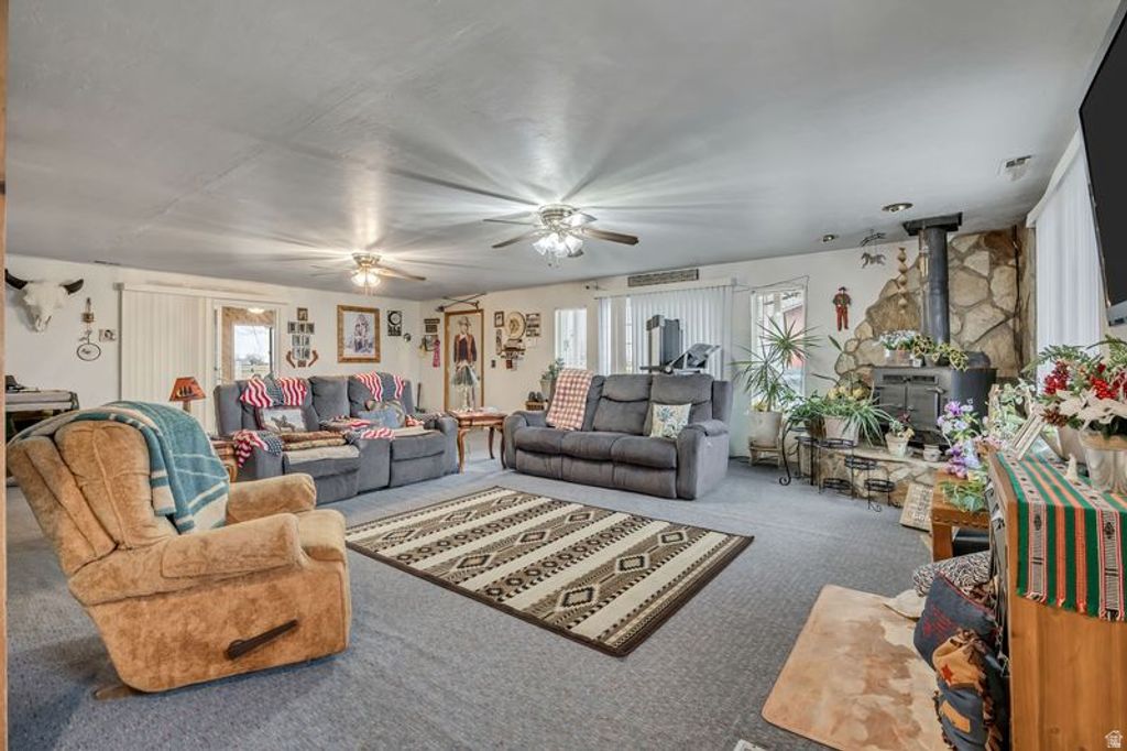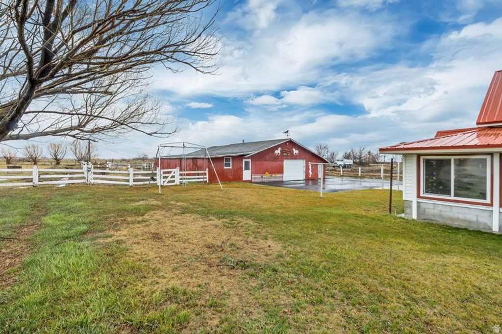 Welcome to the dream life... This is a rare opportunity to own a Weber County homestead with 3.01 acres of land (two parcel numbers) a 3,536 sq ft home, huge barn/garage with horse stalls, garden, beautiful yard, your own pond, and - the cherry on top - a hot tub to relax in after a day on your farm. Home features 6 big bedrooms, 2 huge living rooms, 2 bathrooms, roomy kitchen, formal dining, sunroom, wood stove, and so much storage, you'll never run out of space. (See the virtual videos) Paid off solar panels. Outside you'll have plenty of open space, corrals, pastures and pens for all the animals you could ever want to raise. A sprinkling system keeps the lawn and garden green and one owned water share is included (5 additional shares currently rented). Numerous outbuildings include a huge barn with space for cars, trucks, tractors and toys, and 5 horse stalls with concrete floors and custom sliding doors. Additional adjoining 0.86-acre parcel is available if buyer is interested in expanding acreage. Acreage, parcel configuration, and property details are provided as a courtesy estimate only. Buyer and buyer's agent to verify all information.