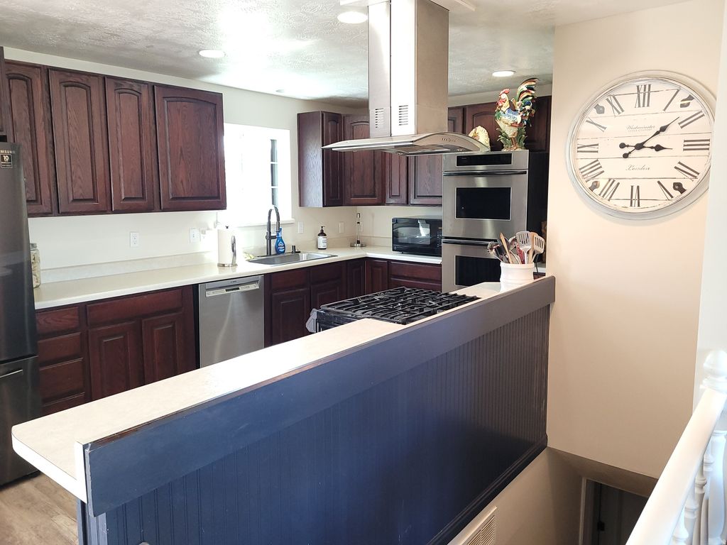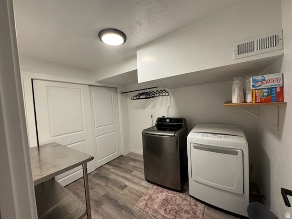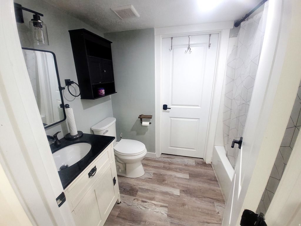 Beautiful West Jordan home on a large lot in desirable quiet neighborhood and just around the corner from the neighborhood park. Newly remodeled over the last 5 years with new paint, LVP flooring throughout the upstairs and downstairs. All bathrooms have been updated and all new trim and doors downstairs. New HVAC and triple pained windows in 2025. The driveway, front porch and back patio have all been freshly poured within the last 4 months and has extra parking on the side of the house, great for a camper or trailer. This house has a lot of space with three bedrooms, 3 baths and two flex rooms. Flex rooms are great for use as an office and hobby room. All appliances including washer, dryer and refrigerator can stay upon request. Step outside in the backyard to enjoy the gorgeous view of the Wasatch Range under the pergola! Enjoy gardening with the raised garden beds, apple trees, and lots of space to have a backyard garden. Don't forget the basketball court and a spacious shed for all your gardening needs. Come make this home.