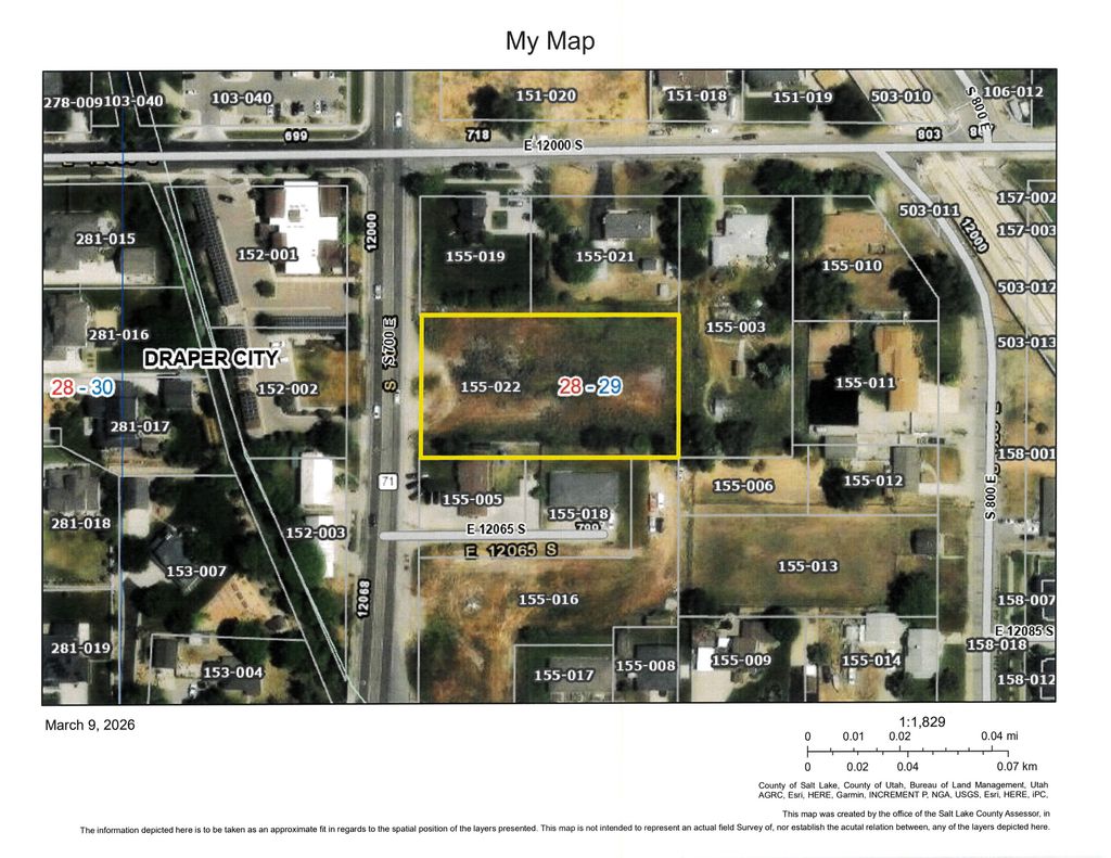 1.10 - acre commercial lot in prime Draper location. Great visibility, easy access, and strong development potential. Close to major roads, retail, and residential growth. Utilities on site.